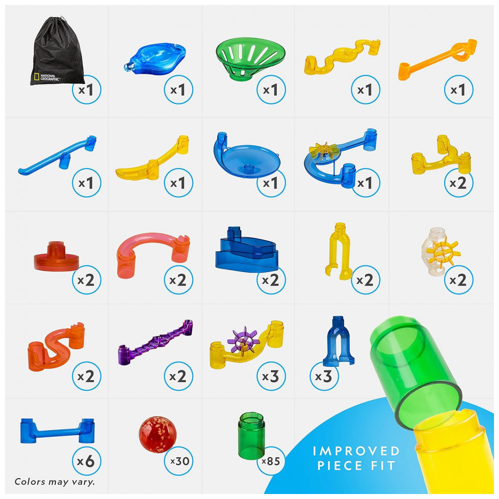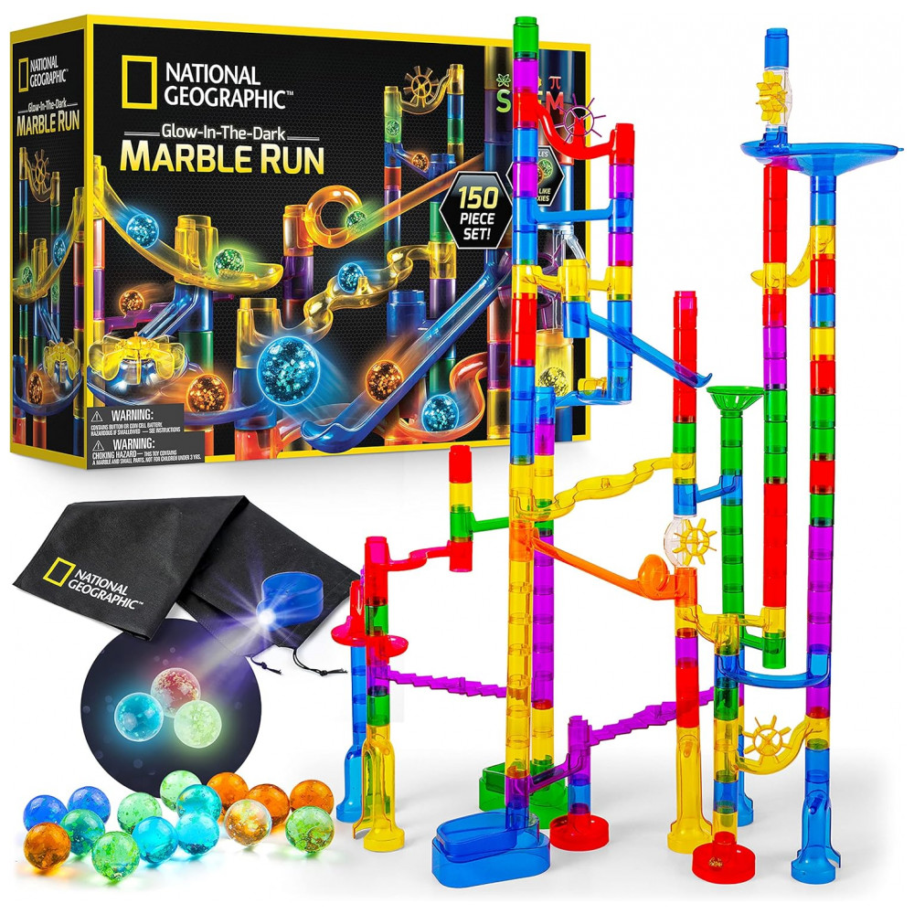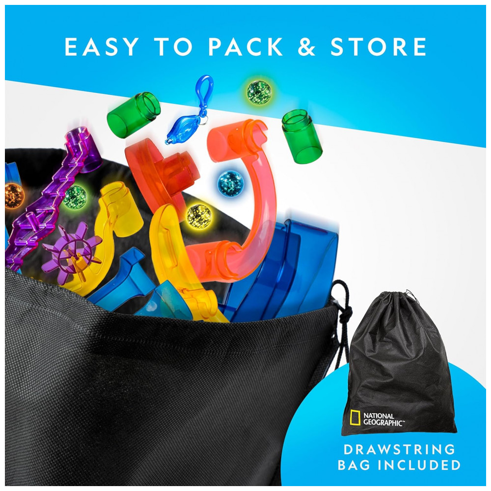 Pista de Canicas Brilhantes 150 Peças com 30 Canicas Glow-in-the-Dark e Bolsa de Armazenamento Brinquedo STEM para Meninos e Meninas – National Geographic