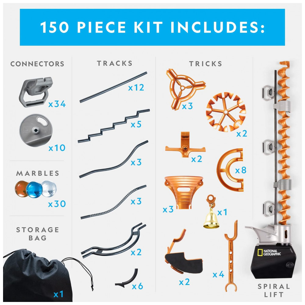 National Geographic Conjunto de Construção STEM de 150 Peças com Pista Magnética para Crianças e Adultos – Labirinto de MármoreBlue Marble