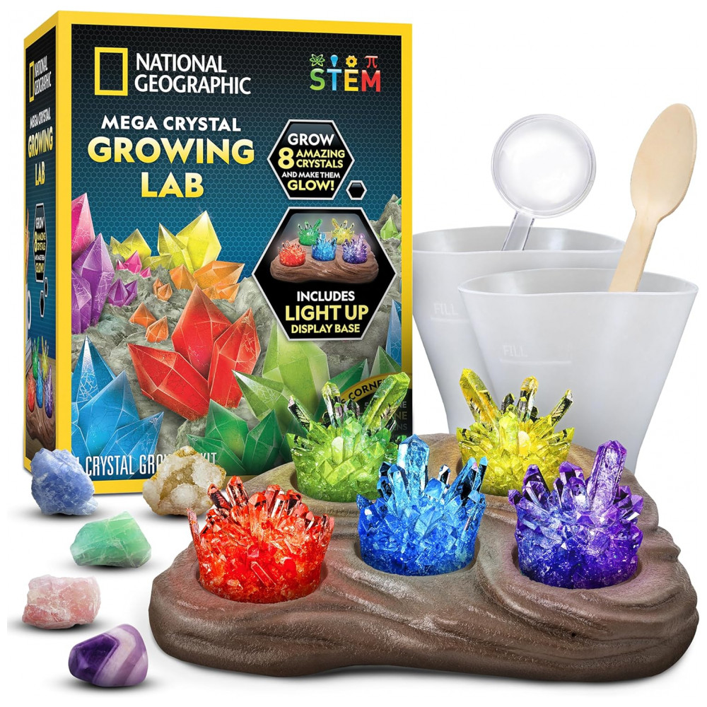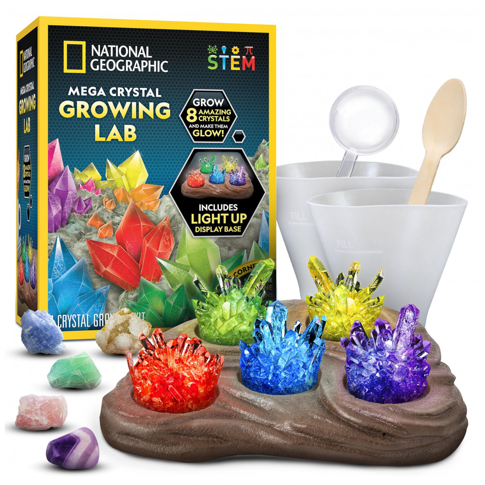 NATIONAL GEOGRAPHIC Mega Crystal Growing Kit Multicolor – Cresça 8 Cristais com Suporte Iluminado Kit de Ciências para Crianças 8-12