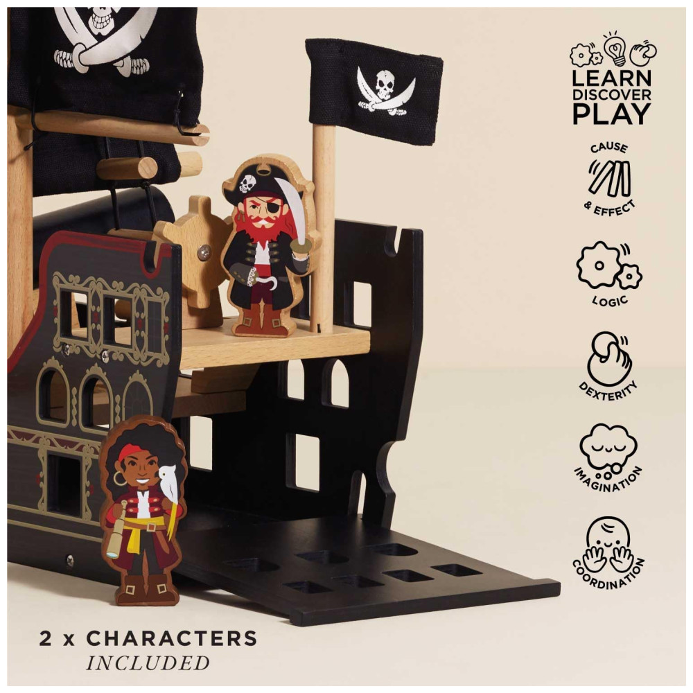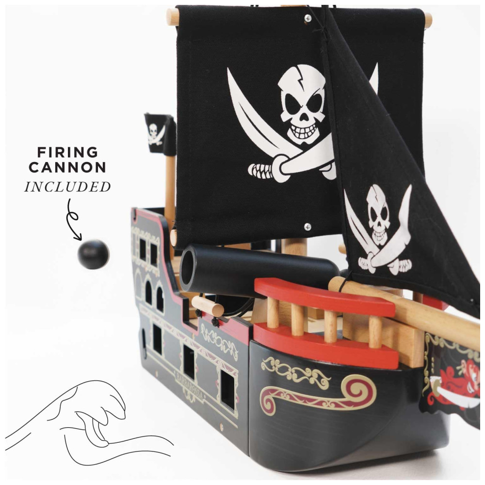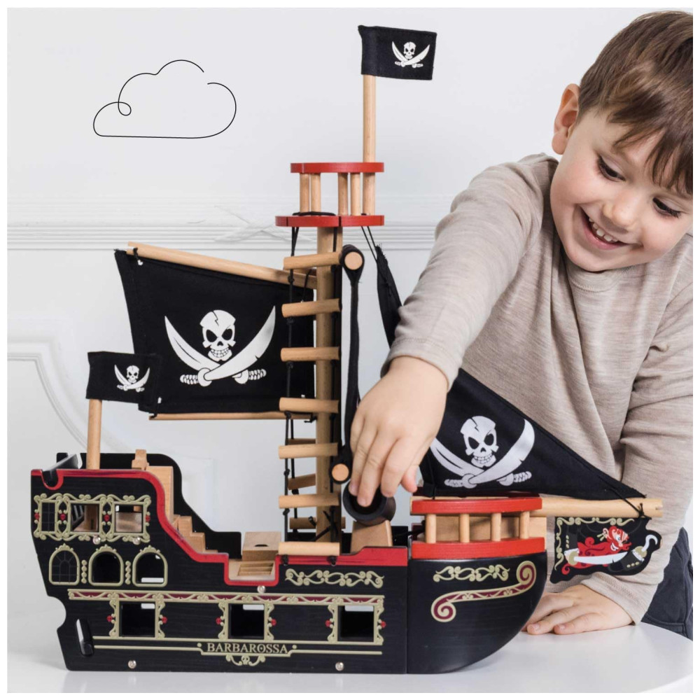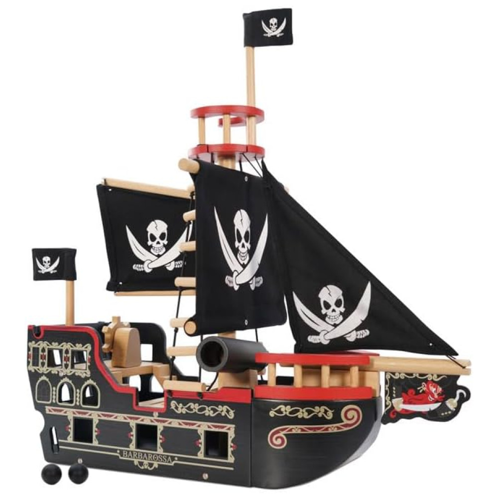 Navio Pirata de Madeira Barbarossa Brinquedo Premium para Crianças de 3 Anos ou Mais Le Toy Van Preto