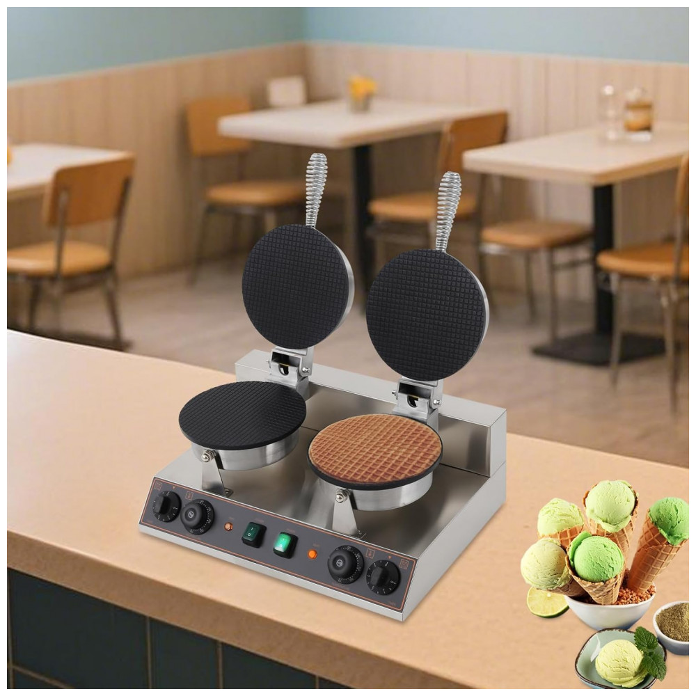A Máquina Comercial de Casquinha de Sorvete NEBEUUO é perfeita para restaurantes, confeitarias, festas e estabelecimentos que desejam oferecer cones crocantes e deliciosos com rapidez e eficiência. Com potência de 2400W (dois aquecedores de 1200W), permite o aquecimento rápido, reduzindo o tempo de pré-aquecimento para cerca de 5 a 8 minutos e produzindo cones em apenas 2 minutos. Sua capacidade para operar com duas placas simultaneamente amplia consideravelmente a produtividade.