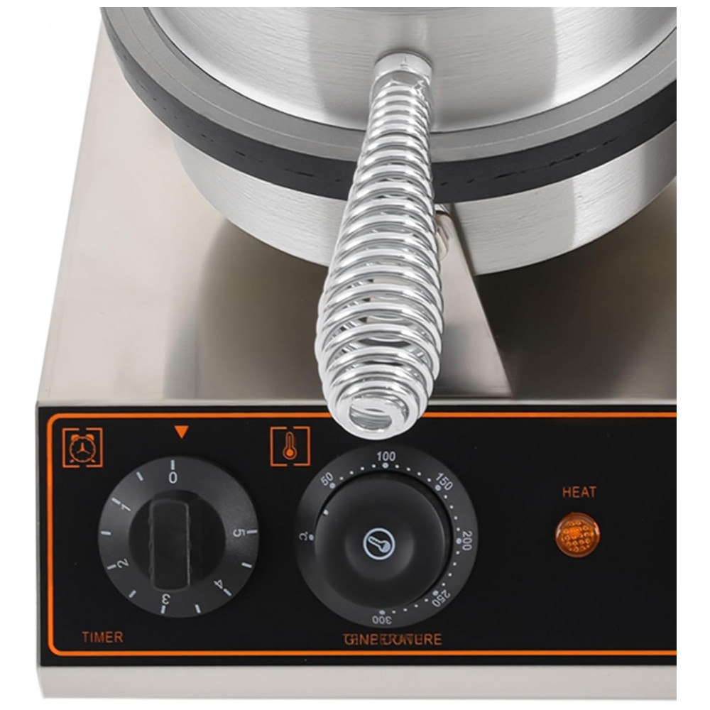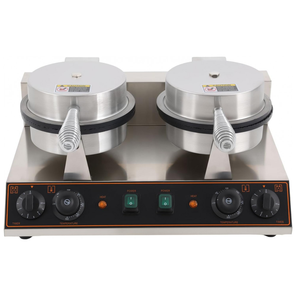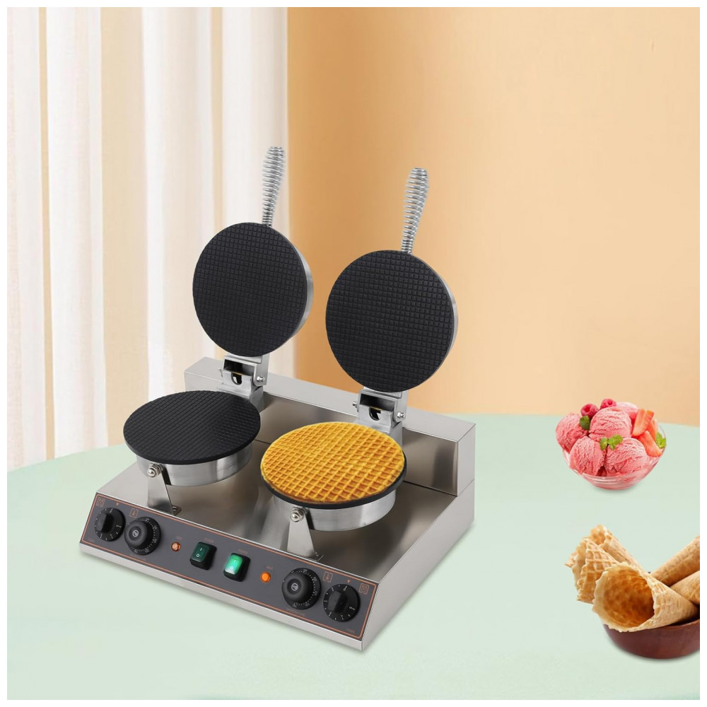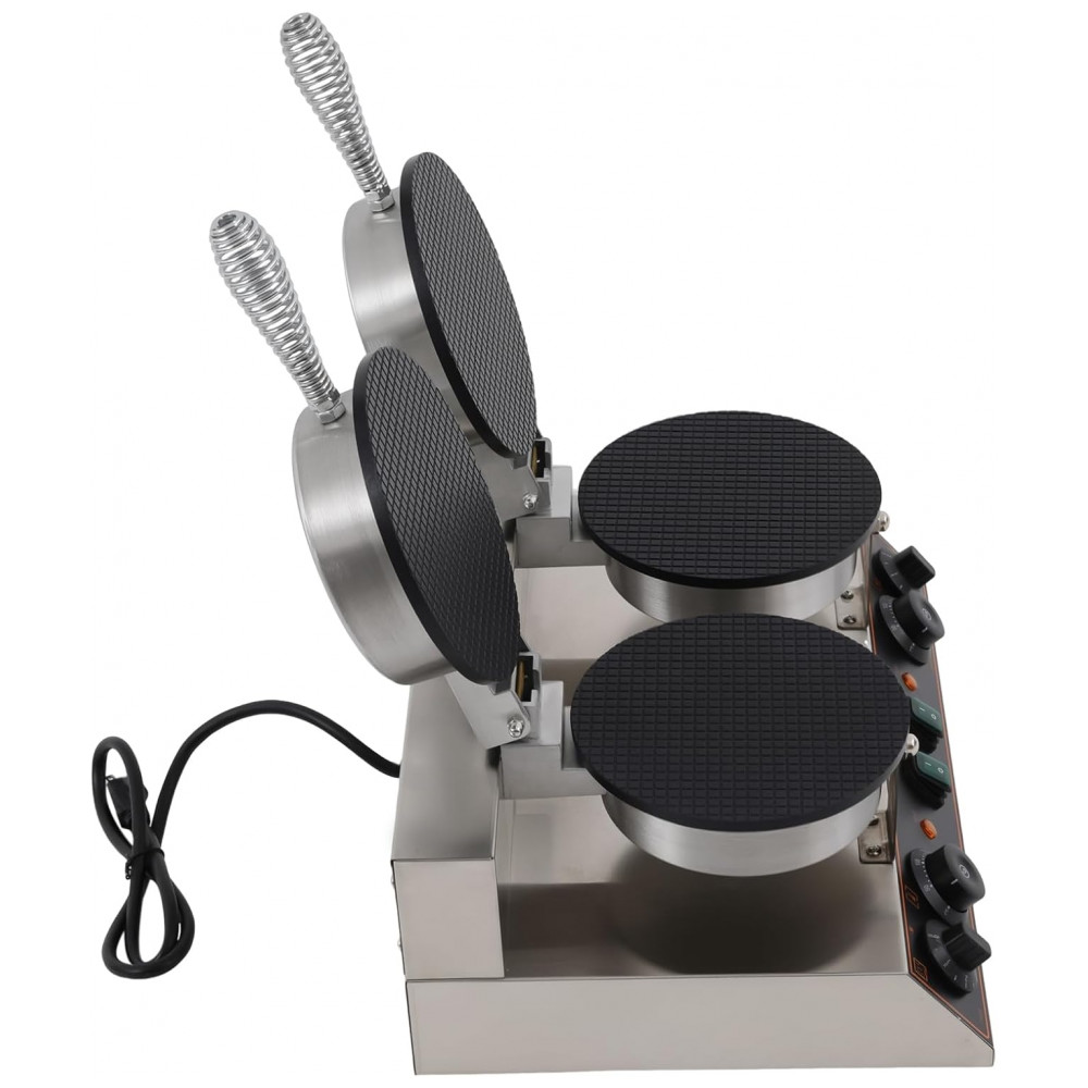 Projetada com alta tecnologia, a máquina possui controle de temperatura preciso e temporizador de até 5 minutos, garantindo a preparação ideal de cada cone. O sistema de aquecimento duplo, aliado ao design de prensa, proporciona um cozimento uniforme de cima a baixo, resultando em cones perfeitamente dourados e crocantes.