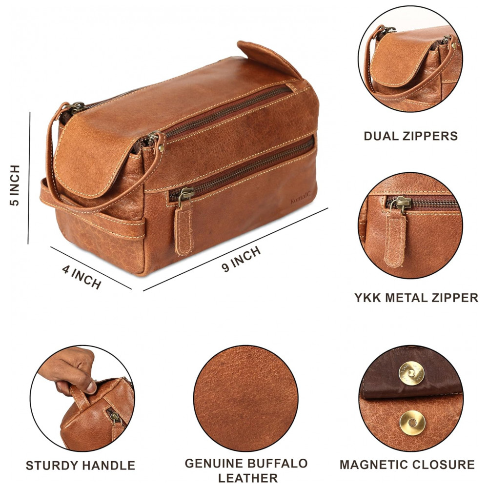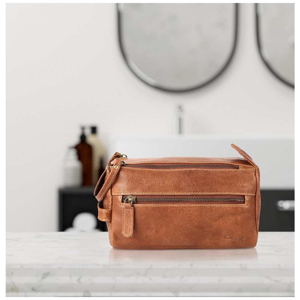 Necessaire Masculina de Couro KOMALC Marrom