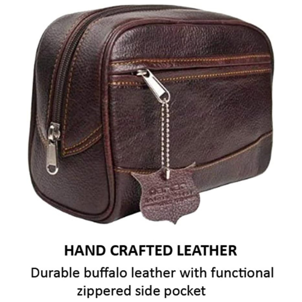 NECESSAIRE DE PELE DE BÚFALO Feitas de couro de búfalo de alta qualidade, essas bolsas de toalete de viagem masculinas são duráveis e ótimas para viagens. Este luxuoso kit Dopp manterá todos os itens essenciais de higiene frascos de shampoo, creme de barbear, sabonetes, pasta de dente e lâminas de barbear s e organizados.