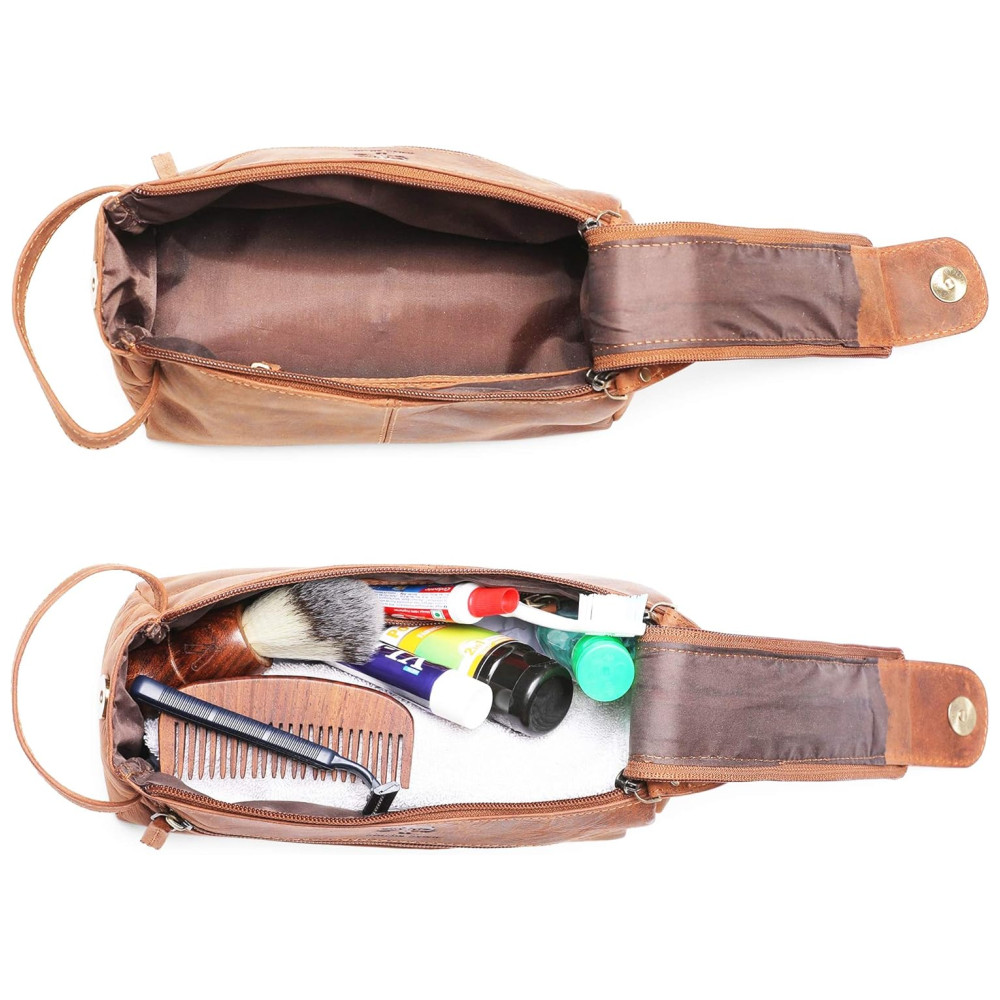 Cabe em malas de mão Medindo apenas 12 x 25 x , esta bolsa de higiene pessoal de couro é ideal para o embalador leve. É especialmente projetada para ocupar pouco espaço em malas de mão e malas.