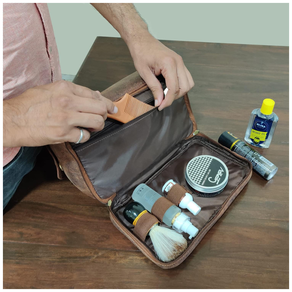 Necessaire Masculina Vintage de Couro com Forro à Prova d RUSTIC TOWN RT6312FLR Lilás
