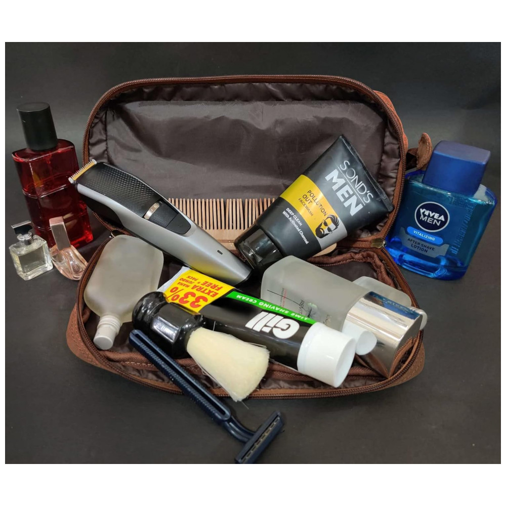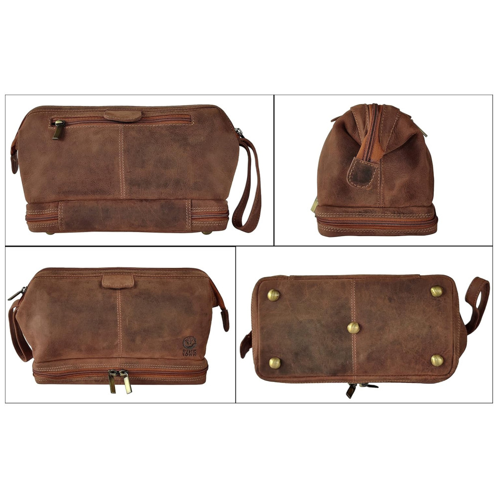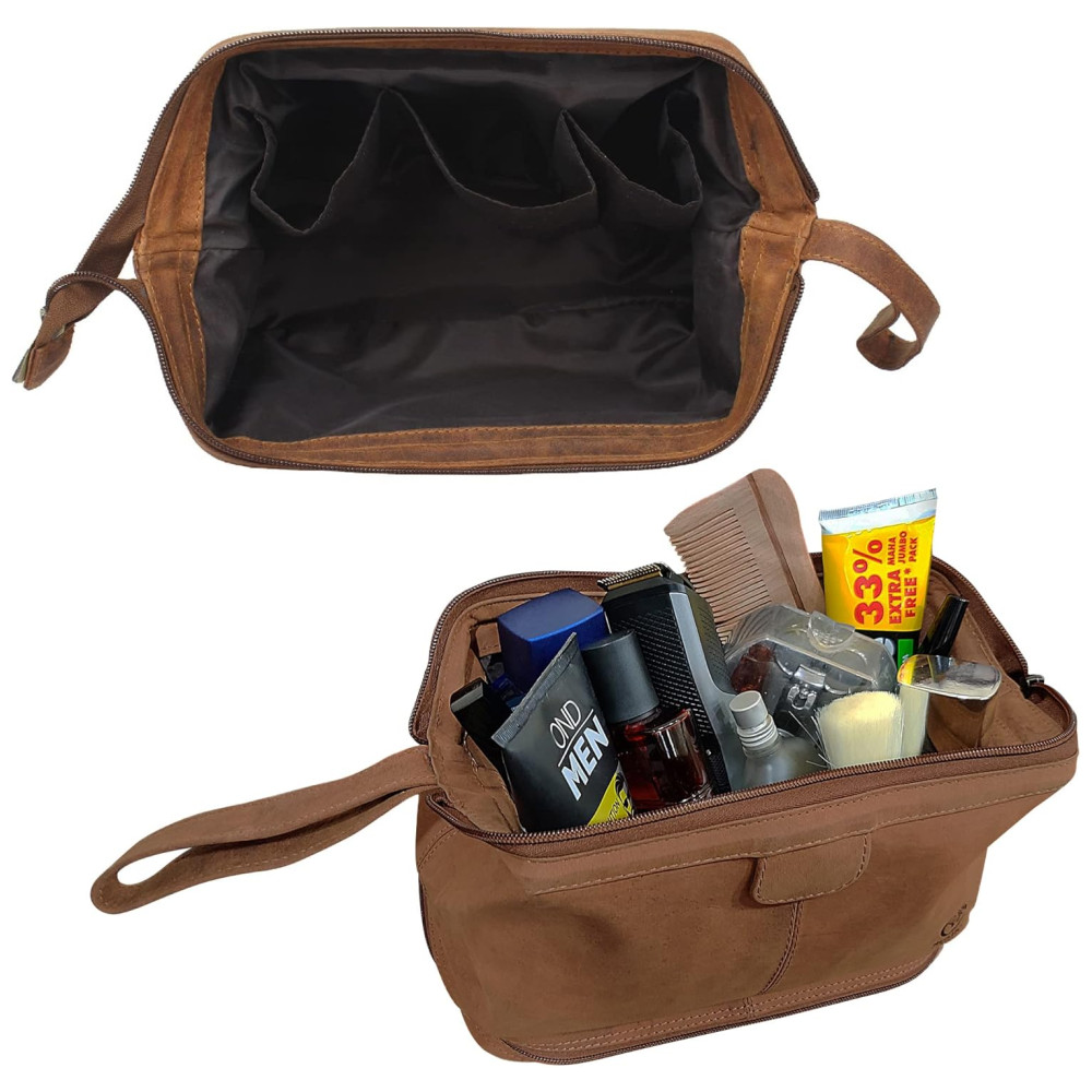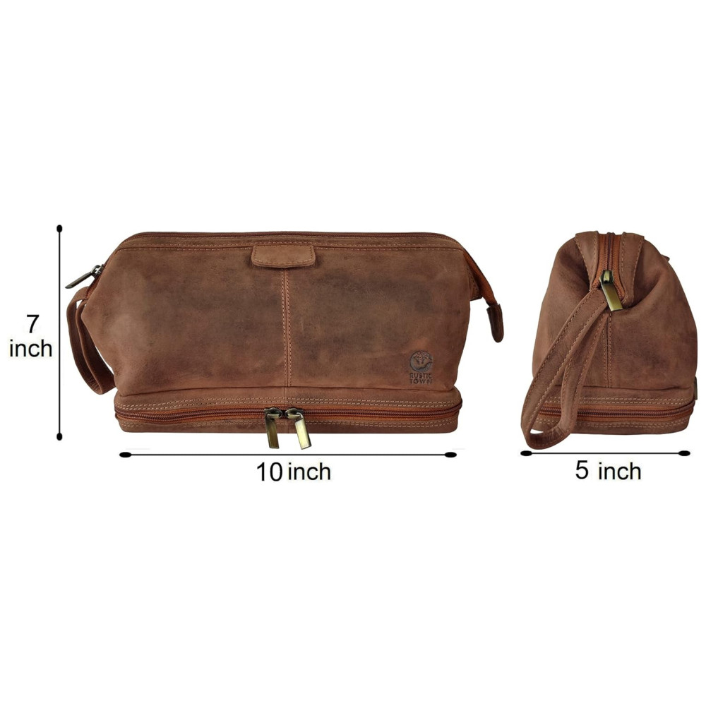 Necessaire Masculina Vintage de Couro com Forro à Prova d RUSTIC TOWN RT6319FLR Marrom