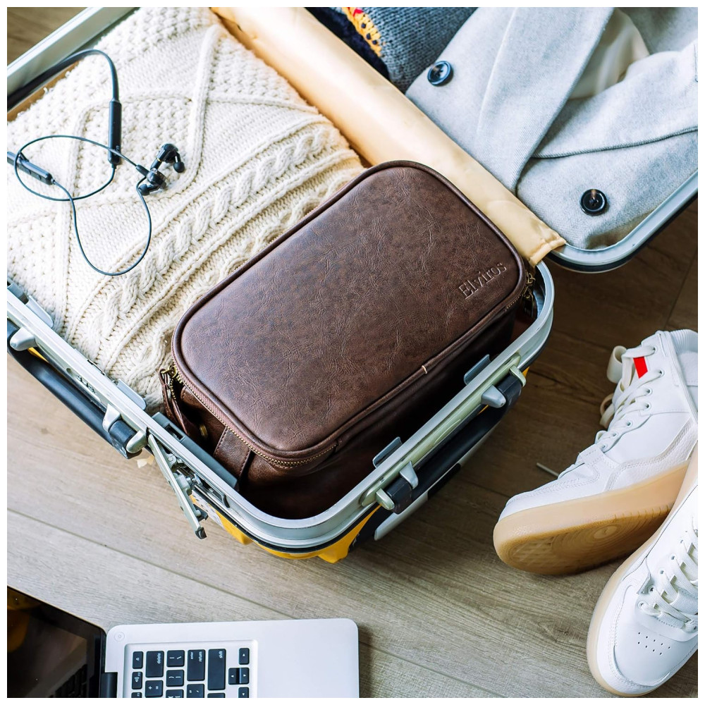 Necessaire Masculina Vintage de Couro Sintético com Forro à Prova d ELVIROS ELV17000261BR Marrom