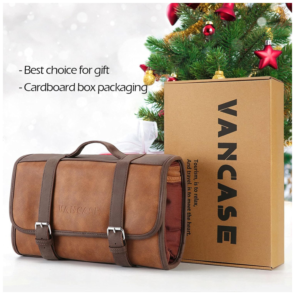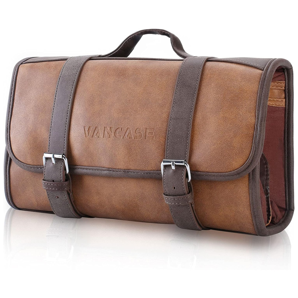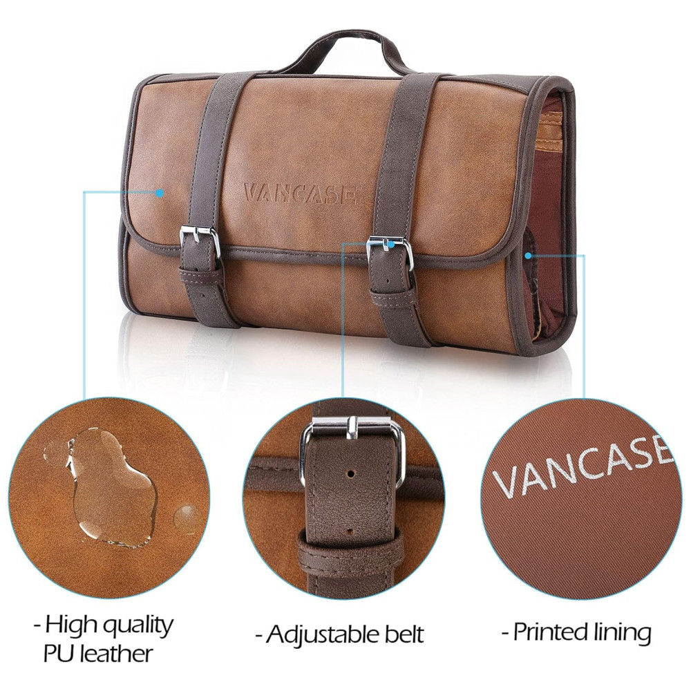 Necessaire Masculina Vintage de Couro Sintético com Forro à Prova d VANCASE Marrom