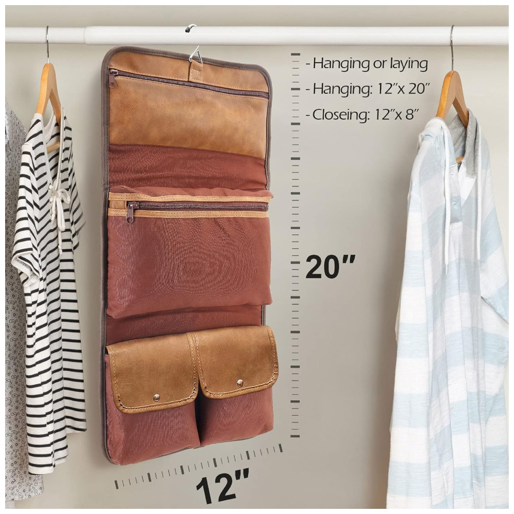 Companheiro de viagem Quando a mala de viagem suspensa é dobrada, o tamanho é 30 x . É conveniente transportar e economizar espaço extra. Quando expandido, o tamanho é 30 x , revela um grande espaço de zenamento que pode zenar muitos acessórios de viagem