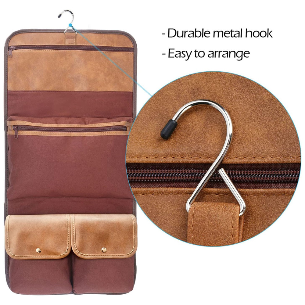 Projetado para organização Esta bolsa pode ser usada como uma bolsa de cosméticos suspensa ou plana sobre uma mesa. 4 bolsos diferentes facilitam a organização de uma variedade de acessórios de viagem. O design da fivela permite que você ajuste livremente o comprimento para garantir que seus itens estejam bem protegidos