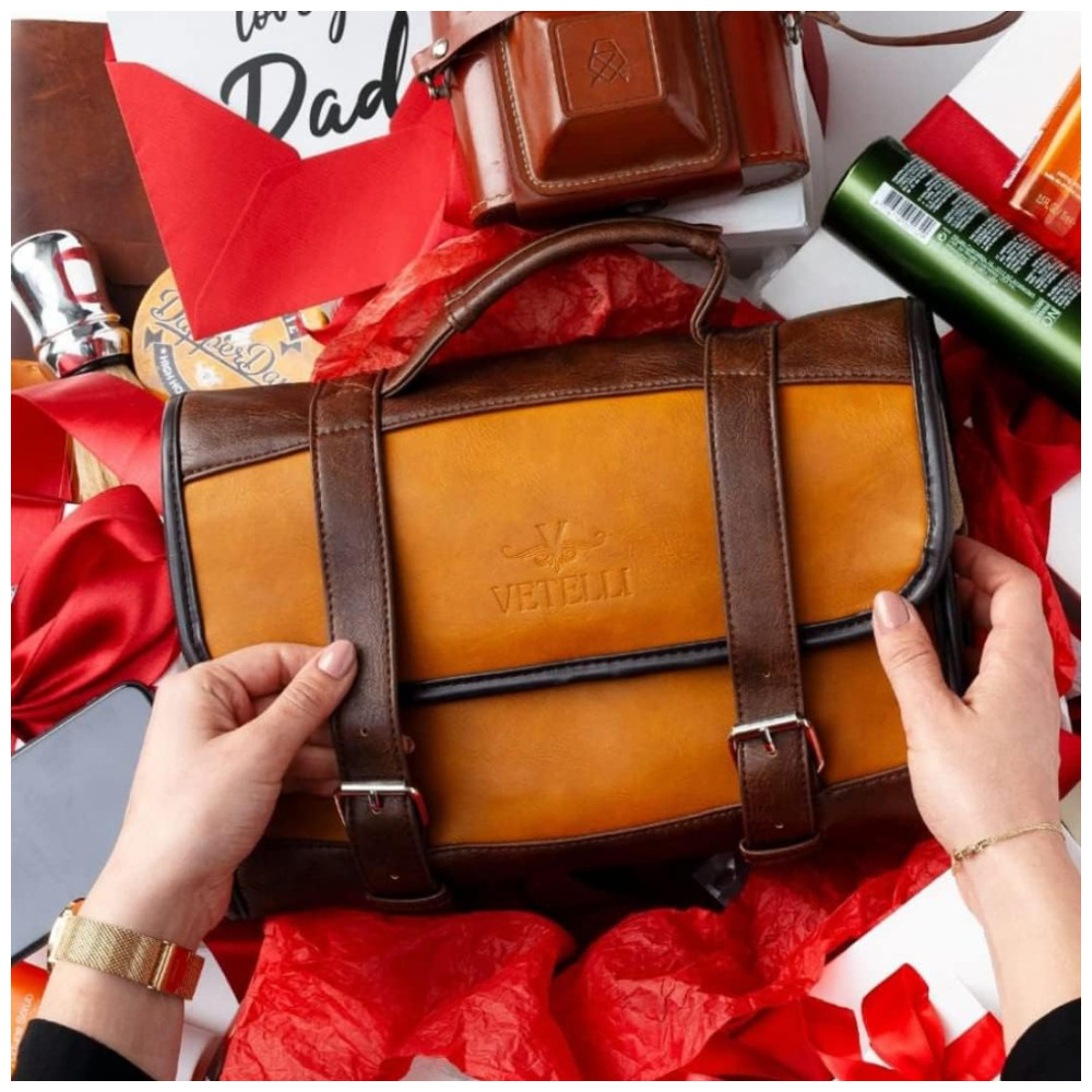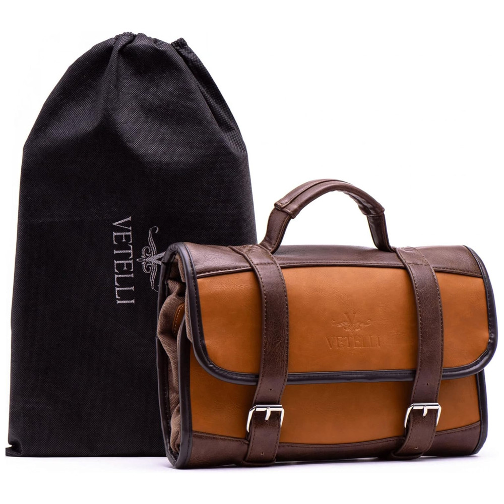 Necessaire Masculina Vintage de Couro Sintético com Forro à Prova d VETELLI V103 Marrom