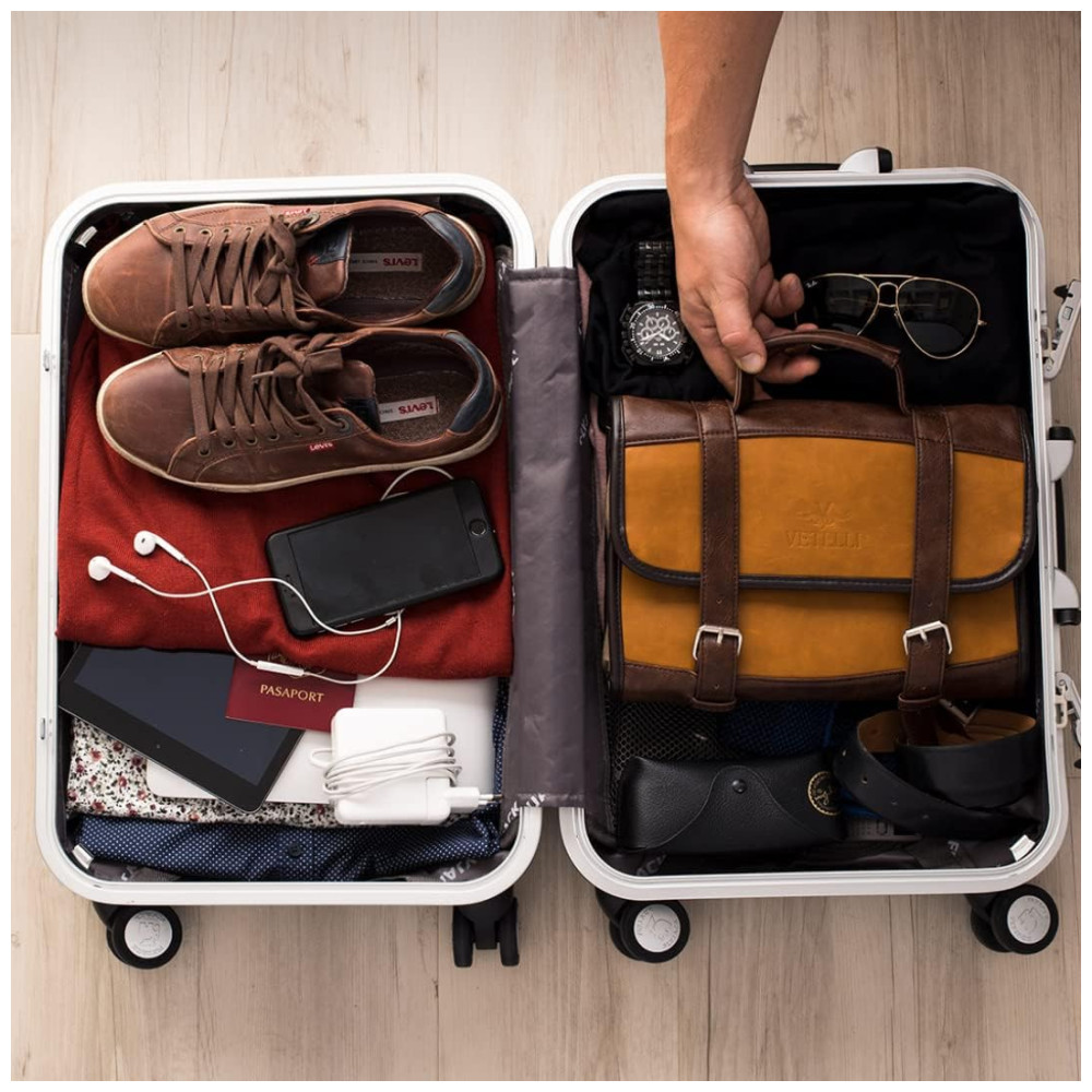 Economia de espaço menos é mais ao viajar, certo Nossa bolsa suspensa oferece muito espaço para guardar todos os seus itens essenciais de viagem, sem bagunçar sua mala