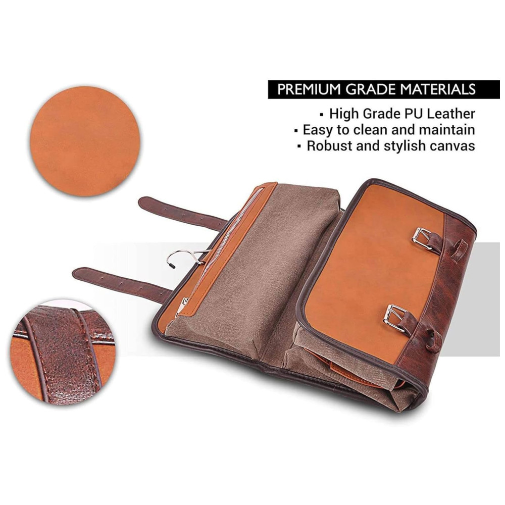 Fácil de usar e versátil nossa bolsa dobrável possui um gancho de metal resistente para pendurar, para que você possa pendurar sua bolsa na parte de trás da porta ou em toalheiros e é sempre de fácil acesso e protegida contra derramamentos e vazamentos. Apresenta construção em lona , couro com material durável de alta qualidade com fechos e fivelas duráveis e resistentes nos quais você pode confiar por muitos anos