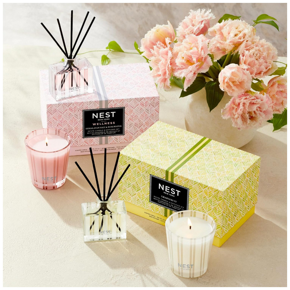 NEST New York Conjunto de Vela Perfumada Petite 12757 g e Difusor 3844 ml Vidro Reutilizável Vegano Sem Crueldade – Grapefruit