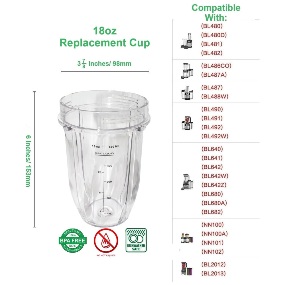 ALTA QUALIDADE: Nossas substituições têm marcações de medidas padrão e métricas para fácil medição do conteúdo da sua bebida, para que você possa fazer a mistura perfeita sempre. Para maior conveniência, é seguro para lava-louças no cesto superior e livre de BPA.