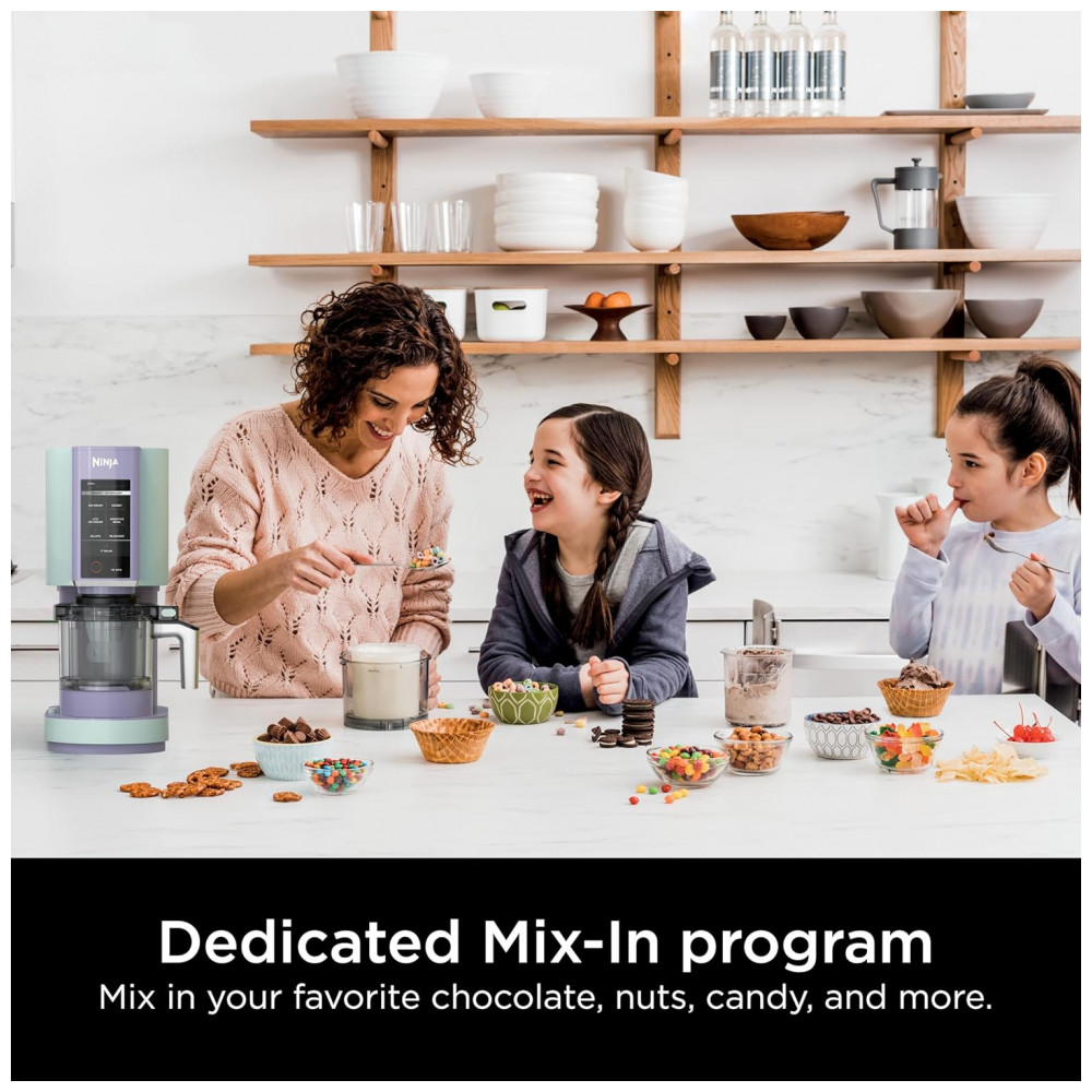 Transforme bases congeladas em sorvete, sorbet, milkshakes e muito mais com o Ninja CREAMi com apenas um toque de botão. A Tecnologia Creamify da Ninja permite que o CREAMi transforme um bloco uniformemente congelado em uma textura incrivelmente suave e cremosa em minutos. De saudável a indulgente, o Ninja CREAMi pode criar sobremesas geladas únicas como você! Transforme quase qualquer ingrediente em sorvete, sorbet, milkshake e muito mais. Com o Ninja CREAMi, você tem total controle dos ingredientes para opções com pouco açúcar, cetogênicas, sem laticínios e veganas. Adicione seu chocolate, nozes, frutas favoritas e muito mais para personalizar qualquer sobremesa do CREAMi. De doce a salgado, saudável a indulgente, há uma sobremesa do CREAMi para todos. Crie combinações de sabores e ingredientes exclusivos que você não encontra na loja. 7 programas com um toque permitem a combinação perfeita de velocidade, pressão e tempo para processar completamente seu recipiente congelado. Escolha entre Sorvete, Sorbet, Gelato, Milkshake, Smoothie Bowl, Sorvete Light e Mixin. Crie uma sobremesa do CREAMi em três etapas fáceis. Basta preparar sua base, congelar durante a noite, processar e saborear! Se desejar que sua sobremesa processada fique mais macia e cremosa, selecione a função Reprocessar. PROCURANDO MAIS RECIPIENTES? Esta unidade é COMPATÍVEL APENAS com os acessórios de recipiente Ninja CREAMi NC299 e NC300. Não serve nos recipientes das séries NC100, NC200 ou NC500 – certifique-se de comprar para a unidade correta. Tecnologia Creamify permite que o CREAMi transforme um bloco uniforme congelado em uma textura incrivelmente suave e cremosa. Os recipientes, tampas e pá são seguros para lava-louças na prateleira superior. O QUE ESTÁ INCLUSO Base do Motor com 7 Programas com Um Toque, 2 Recipientes de 473ml com Tampas de Armazenamento, Pá Creamerizer, 1 Tigela e Tampa Externa, Guia de Inspiração de Receitas