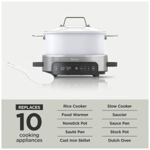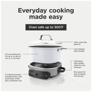 Apresentamos o Ninja Foodi Everyday Possible Cooker, MC1100, o Possible Cooker para uso diário que substitui 10 eletrodomésticos e utensílios de cozinha. Este cookware multifuncional possui uma panela de 6,15 litros que pode cozinhar até 4 xícaras de arroz, perfeito para preparar deliciosas refeições em uma única panela ou acompanhamentos rápidos e substanciais para complementar seus pratos principais. Escolha entre 6 funções de cozimento: Cozimento Lento, Selar/Refogar, Manter Aquecido, Arroz Branco, Arroz Integral e Massa. Cozinhe de grãos fofos a refeições completas para possibilidades infinitas, todos os dias. Rápido e simples, basta ajustar e esquecer. Adicione todos os ingredientes na panela e volte para uma refeição saborosa e sem complicações que toda a sua família vai adorar. Este multicooker versátil elimina a necessidade de um forno e fogão, resultando em uma limpeza mais rápida e fácil. Além disso, seu design compacto se encaixa facilmente na sua bancada e possui alças com toque frio na base para facilitar o transporte para reuniões. Com o Ninja Foodi Possible Cooker, as possibilidades são infinitas.