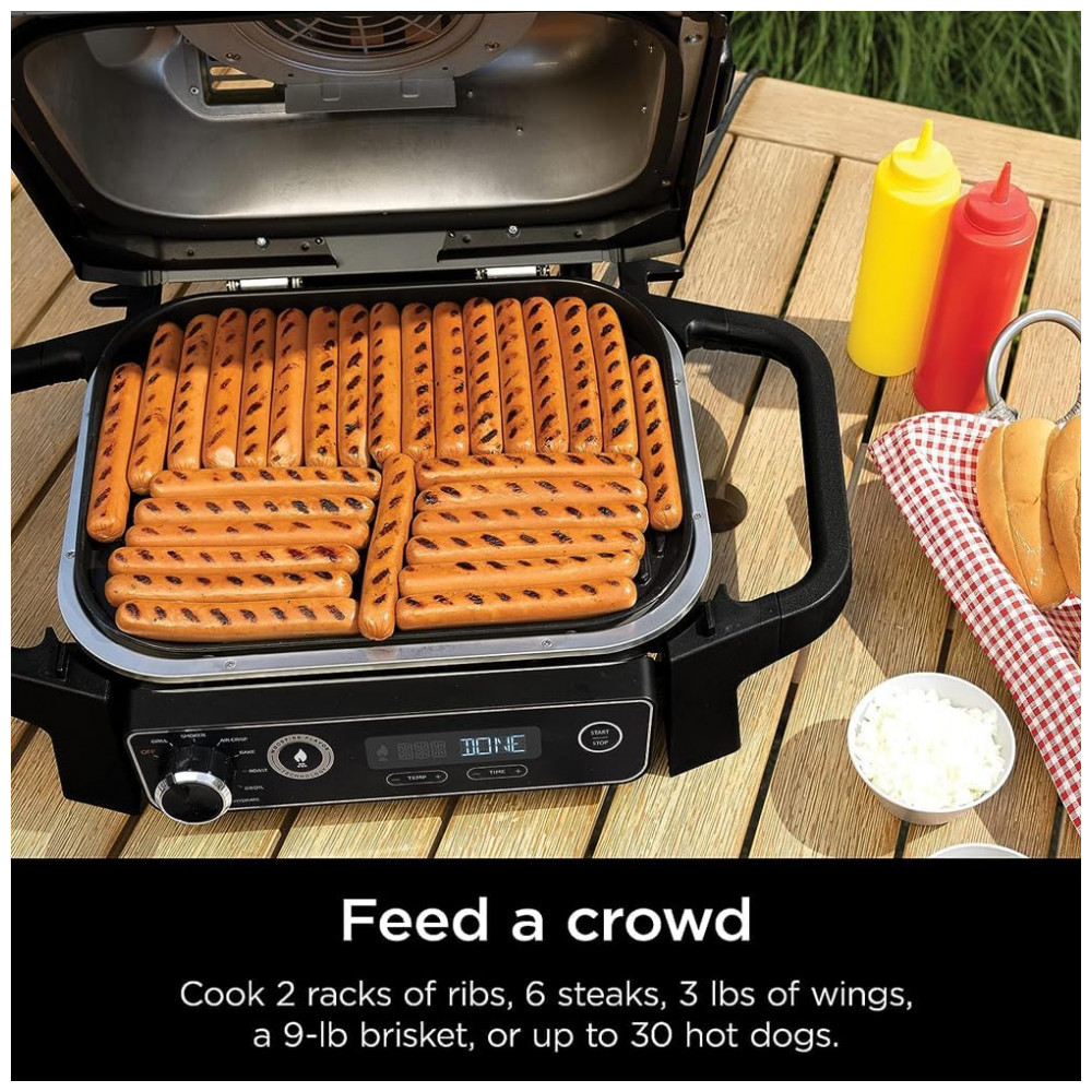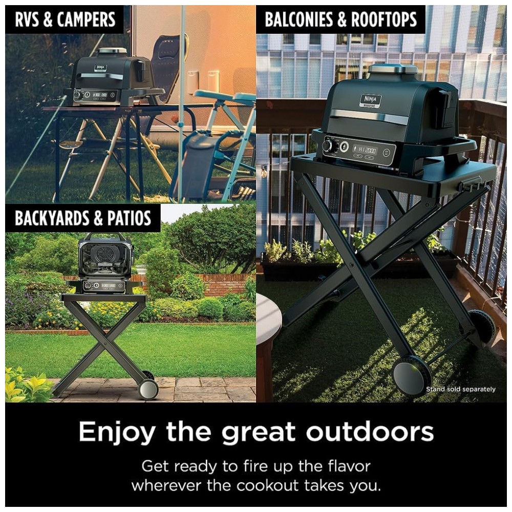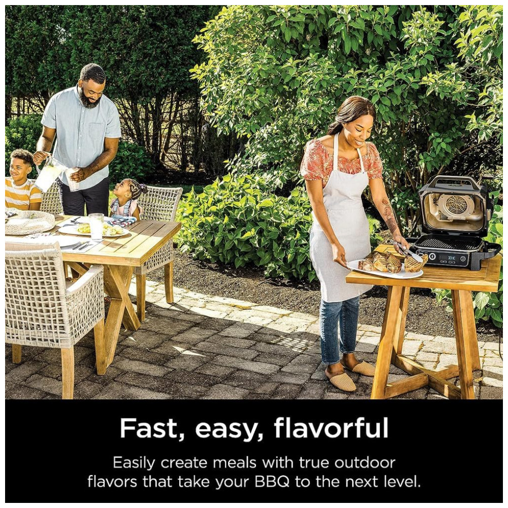 Descubra a versatilidade da Churrasqueira Ninja OG701 Woodfire, um equipamento 7 em 1 que combina as funções de air fryer, forno para assar, grelha, defumador, entre outras, tudo em um único produto compacto e portátil. Ideal para quem mora em apartamentos ou possui espaço externo limitado, este grill inovador utiliza pellets de madeira como fonte de combustível, dispensando chamas abertas ou combustíveis inflamáveis, garantindo total segurança e conformidade com normas residenciais. Seu design moderno em cinza alia estilo e praticidade, permitindo preparar deliciosas refeições com facilidade e sabor autêntico da madeira. Com estrutura em aço de liga resistente, a churrasqueira oferece durabilidade superior e peso aproximado de 13,88 kg, facilitando o transporte e uso em diversos ambientes. As dimensões compactas de 60 cm de profundidade, 47,25 cm de largura e 33,8 cm de altura permitem acomodar o aparelho confortavelmente em sua varanda, cozinha externa ou área de lazer. Aproveite a tecnologia Ninja para transformar seus momentos de preparo em experiências culinárias completas, com controle preciso de temperatura e múltiplas funções para grelhar, assar, fritar e defumar, tudo isso com a praticidade de um grill elétrico movido a pellets de madeira.