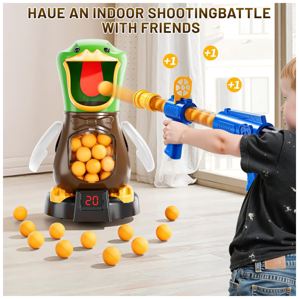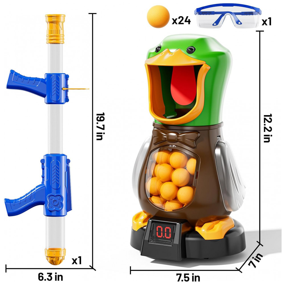 Descubra a diversão garantida com o Jogo de Tiro ao Pato da NIPLOOOW, uma experiência interativa que vai encantar crianças de 3 a 12 anos! Este conjunto completo inclui um alvo de pato móvel, uma pistola popper com bomba de ar, óculos de proteção e 24 bolinhas feitas de espuma EVA, garantindo total segurança e leveza durante o jogo. Ideal para uso interno e externo, esse brinquedo é perfeito para momentos de lazer no quintal ou dentro de casa, promovendo a coordenação motora, o reflexo e a habilidade das crianças em um ambiente competitivo e saudável. O jogo oferece dois modos de tiro – estático e móvel – cada um com níveis variados de dificuldade, tornando o desafio ainda mais divertido e educativo. Além disso, o sistema digital com tela LCD registra a pontuação cada vez que uma bolinha atinge a língua do pato, emitindo sons que tornam a experiência ainda mais realista e estimulante. Prático e seguro, o material ABS liso e resistente é livre de rebarbas, e as bolinhas se armazenam facilmente dentro da barriga do pato, podendo ser recolhidas pela cauda para reutilização sem riscos para as crianças ou o ambiente. Um presente incrível para datas comemorativas como Páscoa, Natal, Halloween, Ação de Graças e Ano Novo, este jogo é ideal para meninos e meninas se divertirem, competirem e se desenvolverem. Traga mais alegria e movimento para as brincadeiras com o Jogo de Tiro ao Pato da NIPLOOOW!