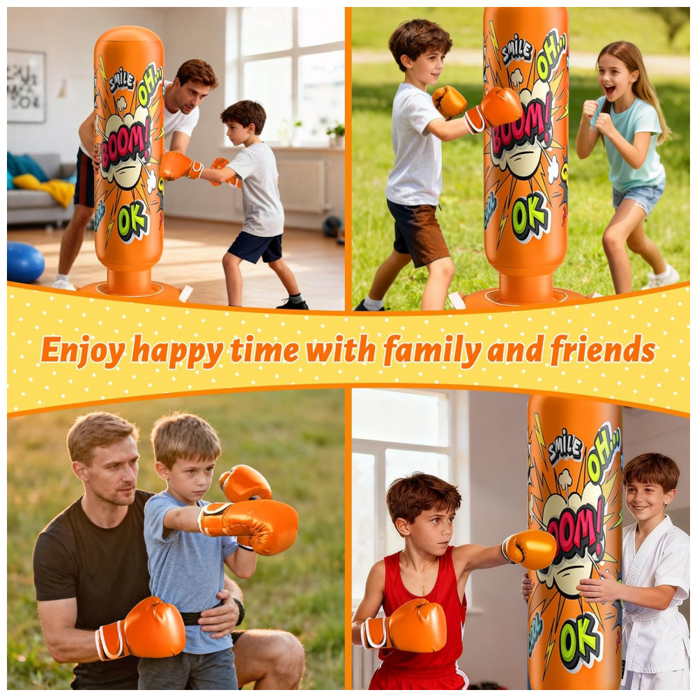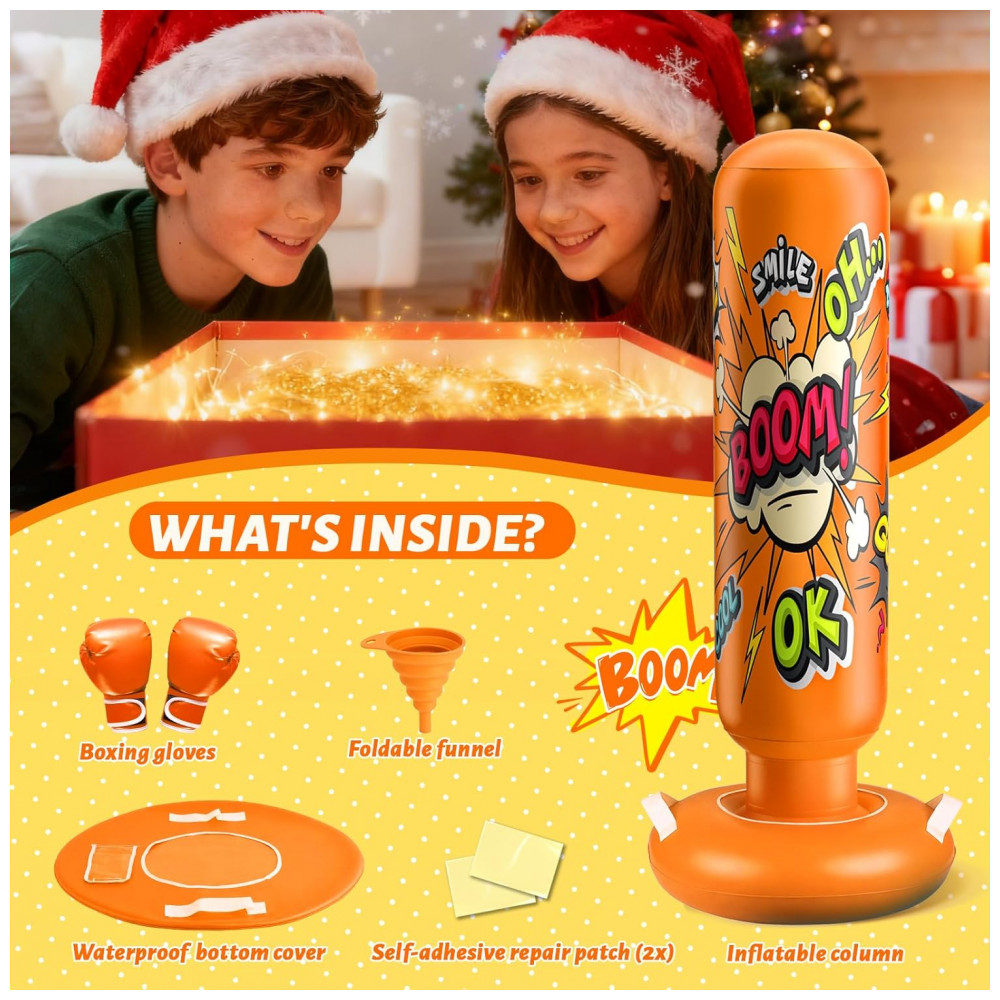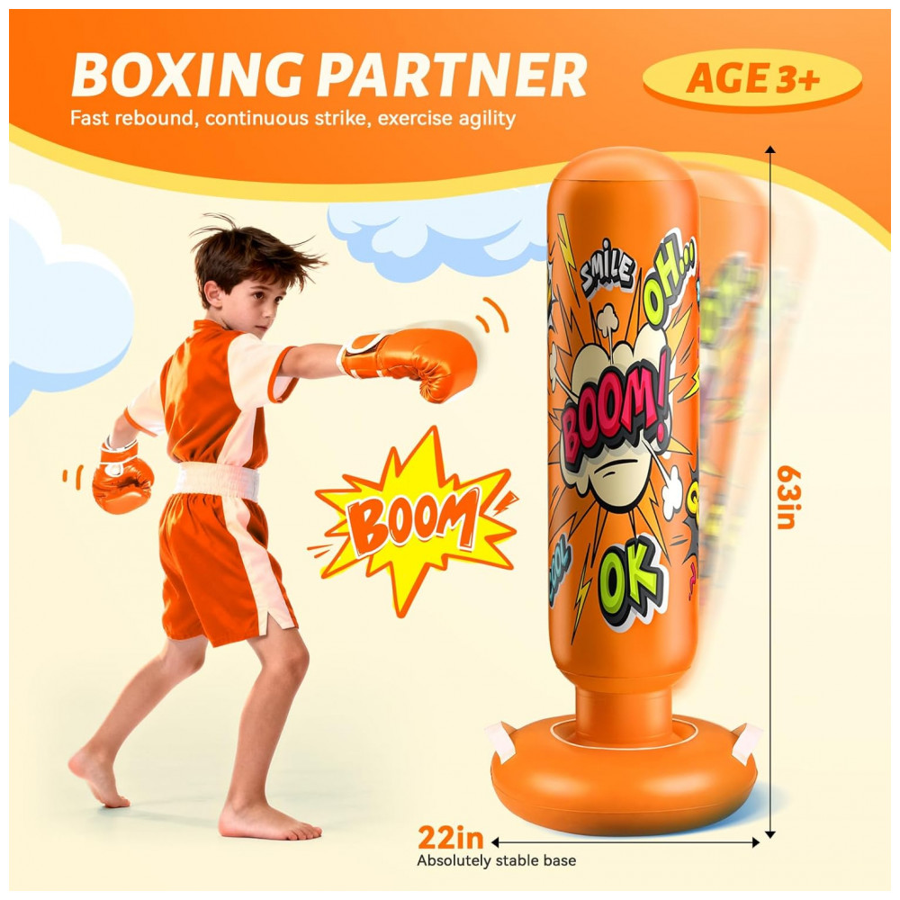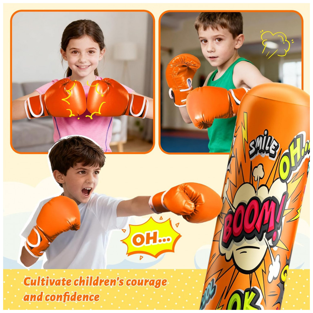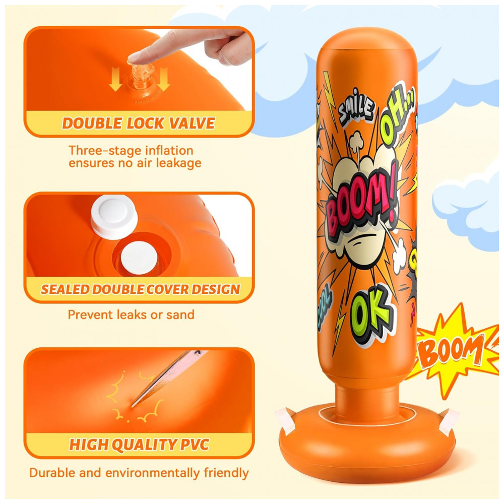 Desenvolvido especialmente para crianças, este saco de pancada inflável é perfeito para exercitar a coordenação motora e praticar boxe de forma divertida e segura. Um presente ideal para datas especiais como Natal e aniversários, ele estimula as crianças a se desconectarem das telas e gastarem sua energia de maneira saudável através de socos alegres, deixando os pais tranquilos. Com uma coluna inflável macia e luvas de boxe inclusas, o equipamento absorve impactos com segurança, permitindo que os pequenos brinquem, pulem e pratiquem movimentos vigorosos dentro de casa — uma solução perfeita para queimar energia em dias chuvosos. Sua base alargada e resistente, que pode ser preenchida com água ou areia, garante estabilidade máxima, evitando tombamentos mesmo durante brincadeiras animadas, assegurando a proteção dos usuários. Além disso, é confeccionado em PVC durável e inclui uma bomba de ar, funil e capa impermeável para o fundo, oferecendo praticidade e resistência para uso prolongado.