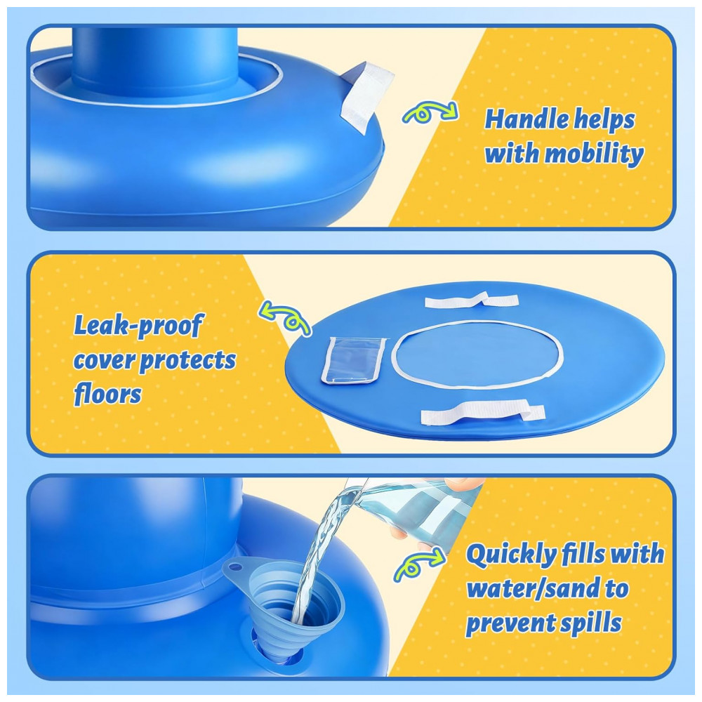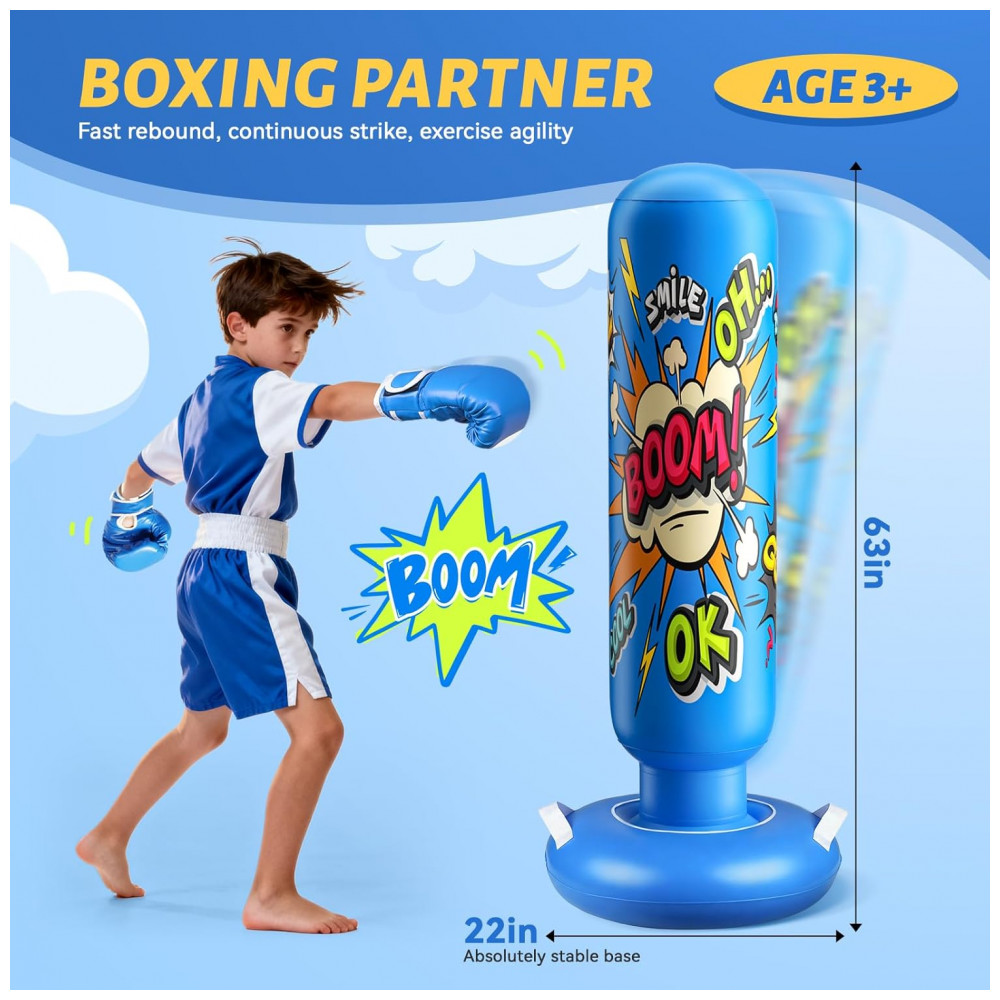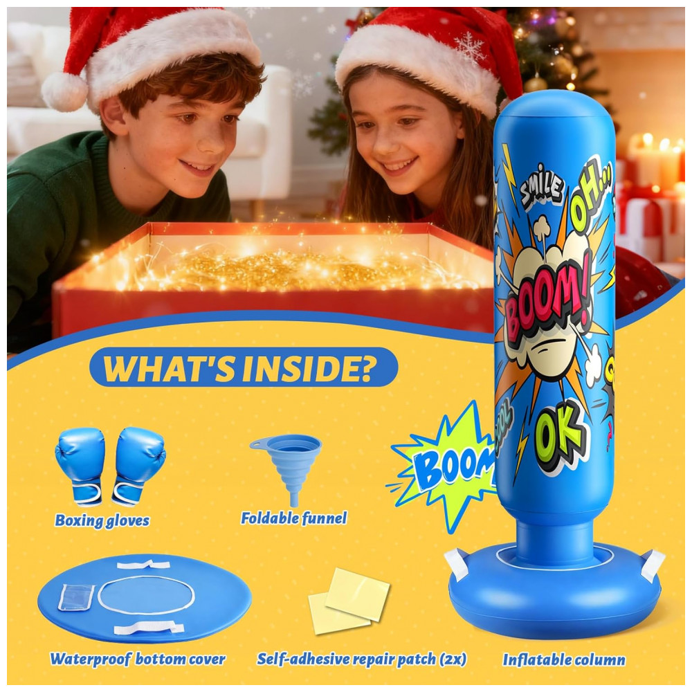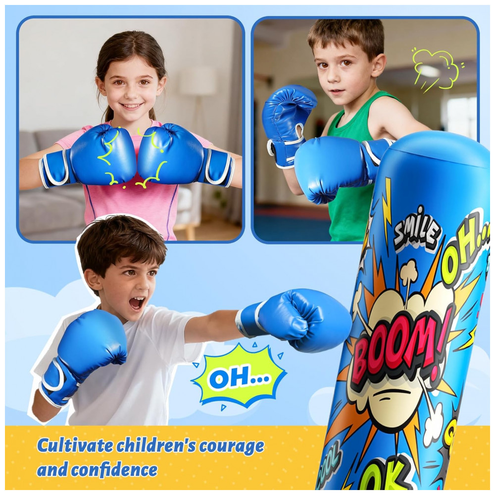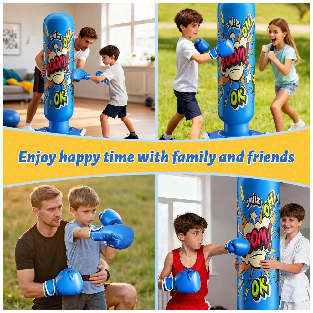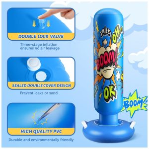Ideal para crianças desenvolverem coordenação motora e praticarem boxe de forma divertida e segura. Este saco de pancadas inflável é o presente perfeito para datas especiais como Natal e aniversários, incentivando as crianças a se afastarem das telas e gastarem energia de forma saudável. Pensado para a diversão ativa e segura, o produto possui uma coluna inflável macia e luvas inclusas que absorvem os impactos com segurança, permitindo que as crianças socem, pulem e brinquem vigorosamente, mesmo em ambientes fechados – uma solução perfeita para dias chuvosos. Sua base ampliada pode ser preenchida com água ou areia, garantindo máxima estabilidade e evitando tombamentos, mesmo durante brincadeiras intensas, promovendo segurança e tranquilidade para os pais.