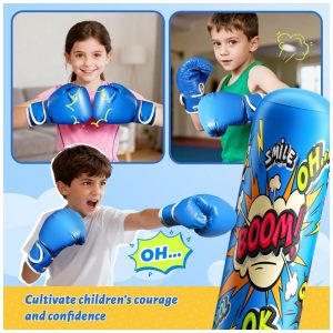 NOCNPSW Saco de Pancadas Inflável para Crianças – Treino de Boxe Karatê e Taekwondo Azul
