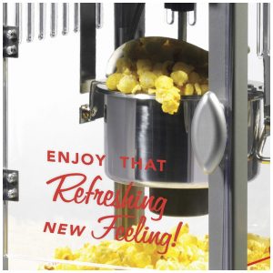 PIPOCA DE CINEMA EM CASA Quer seja noite de cinema ou hora do lanche, este carrinho contém até 10 xícaras de pipoca tipo cinema por lote para manter os baldes de pipoca cheios