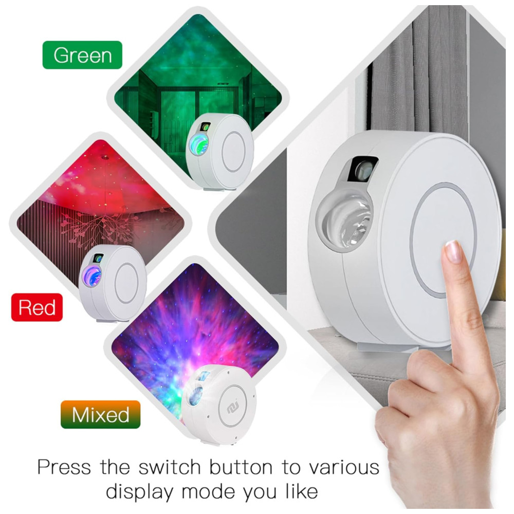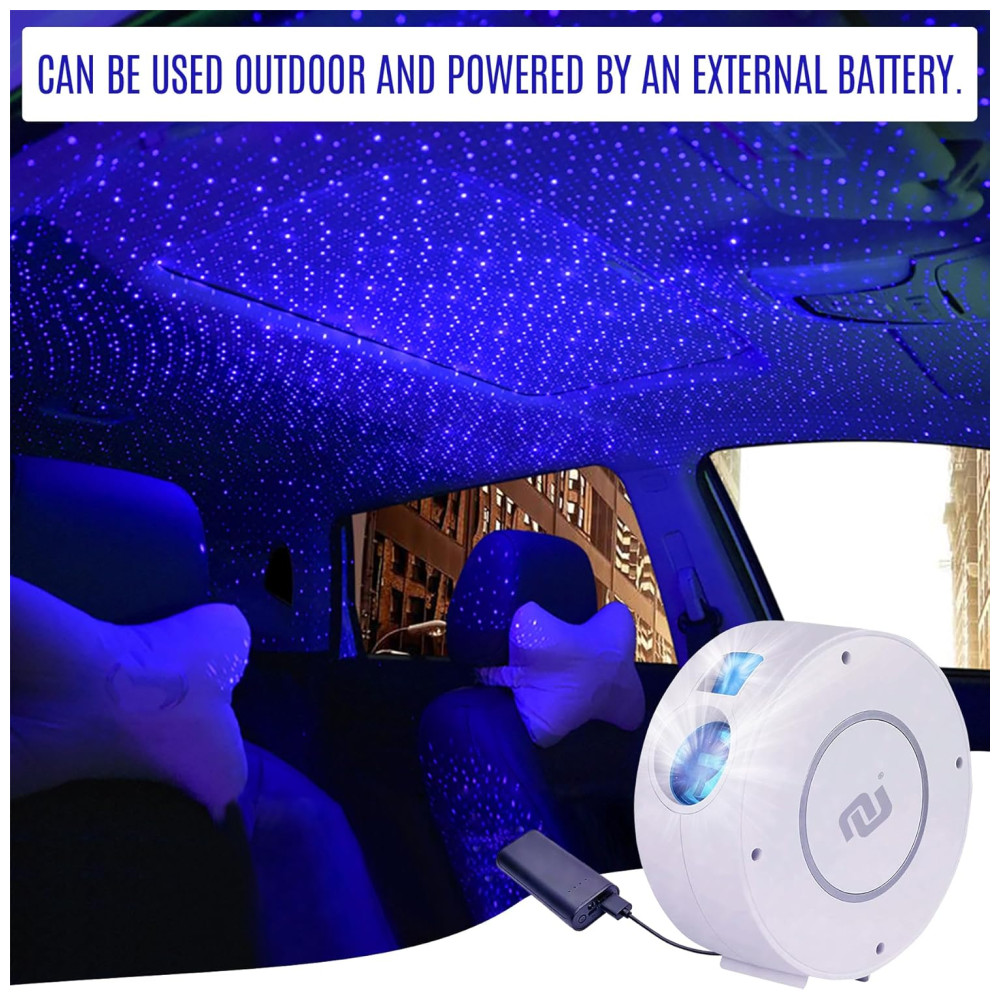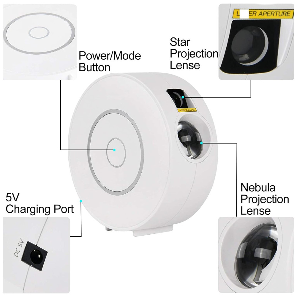 PORTÁTIL E ACESSÍVEL Tamanho compacto e formato circular de diâmetro. Pode ser ligado pelo carregador USB 5V , 1A incluso e cabo de carregamento USB longo de ou pelo banco de energia opcional para uso externo. Use o botão liga , desliga no dispositivo para alterar a cor da nebulosa se não houver WiFi disponível. Perfeito para decoração de interiores como um projetor galáxia, luz de ambiente romântico, abajur e abajur de cabeceira ou acampamento ao ar livre ou diversão em festas.