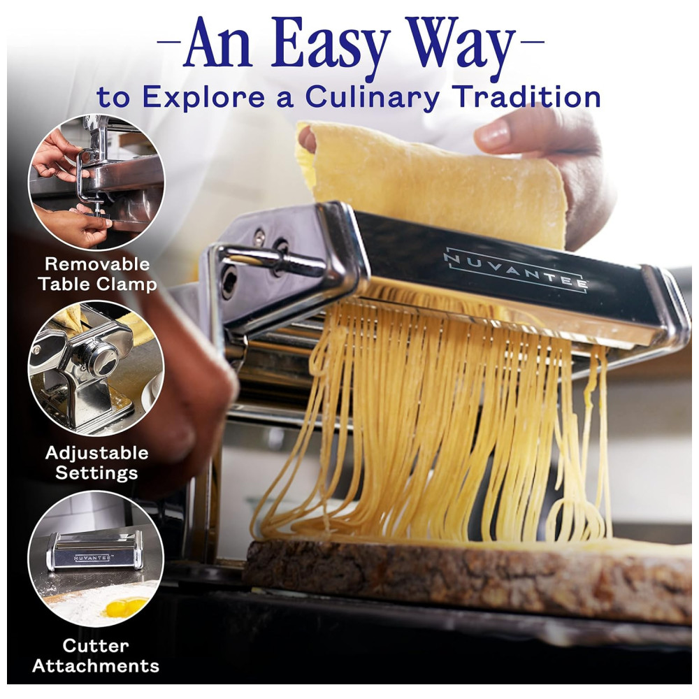 Nuvantee Pasta Maker com 7 Configurações de Espessura Ajustável 2 em 1 Noodle Maker com Rolos e Cortador Faça Espaguete Fettuccine Lasanha e Mais