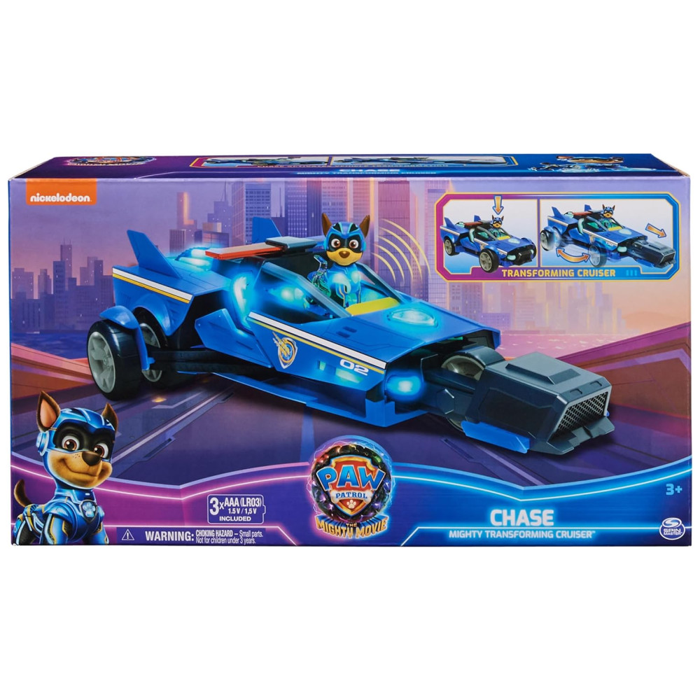 Para missões inspiradas na série PAW Patrol ainda mais divertidas e emocionantes, colecione todos os brinquedos do filme Patrulha Canina, como o incrível QG do porta aviões e todos os brinquedos de edição especial da Patrulha Canina para meninas e meninos, como os brinquedos Mighty Pups, Aqua Pups e Big Truck Pups. Figuras e conjuntos de jogos vendidos separadamente para desfrutar de infinitas aventuras PAWsome com seu filhote de herói favorito, no Chase Mighty Transforming Cruiser Prenda Chase em seu assento para ativar as luzes e sons sincronizados.