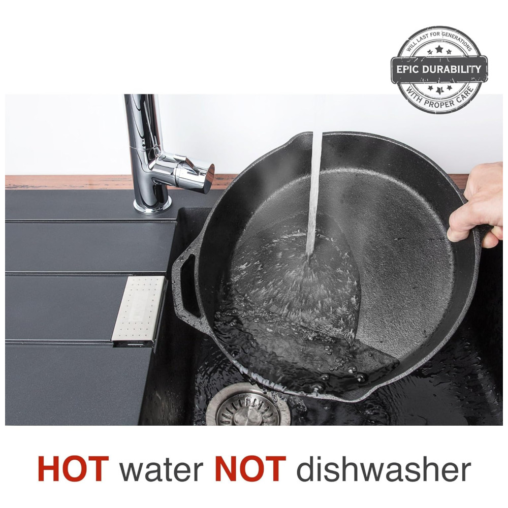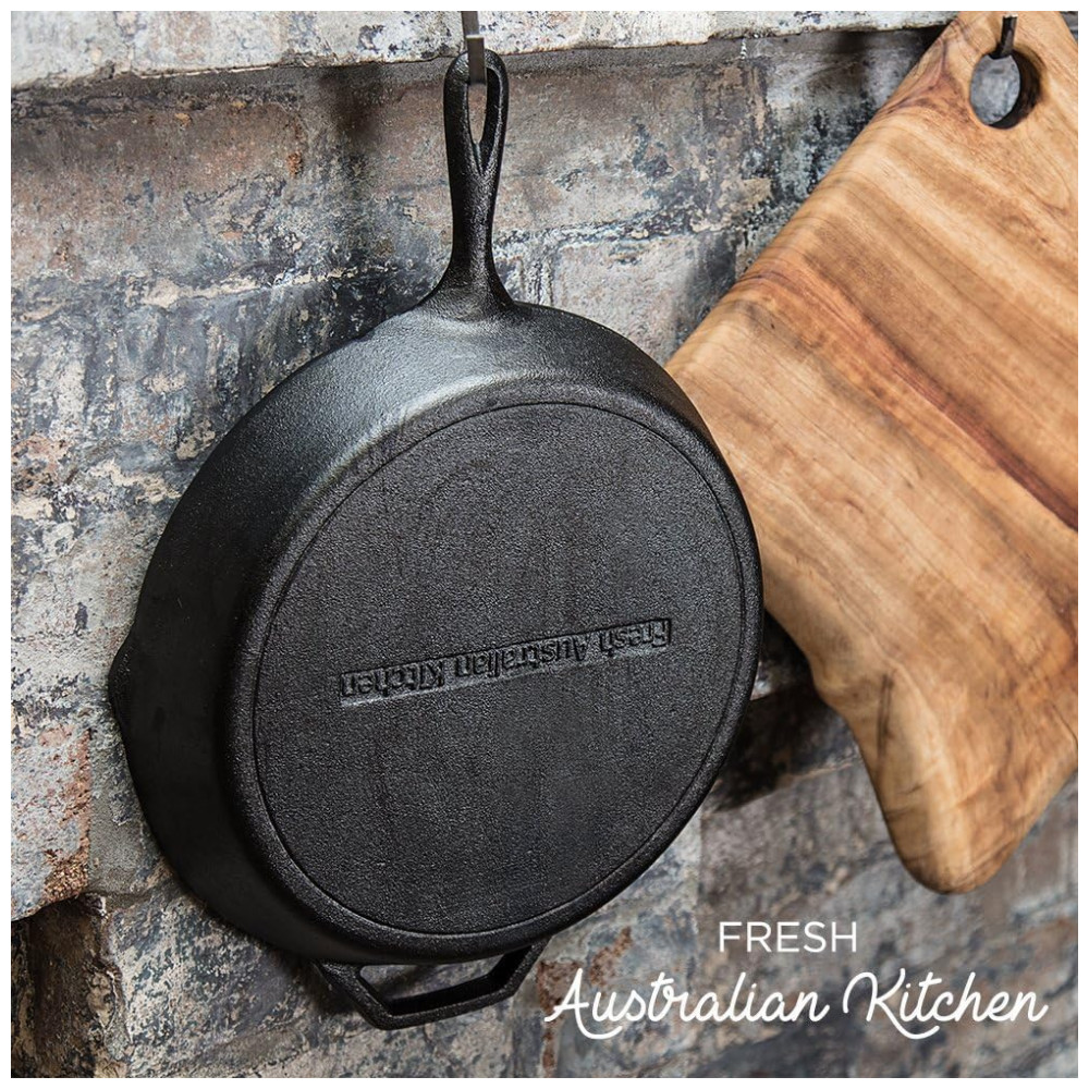 RESISTENTE E DURÁVEL Com cuidado, sua frigideira deve durar por gerações. As panelas de ferro preto australianas frescas vêm pré temperadas, mas se começarem a mostrar sinais de amor demais, tempere as novamente instruções incluídas e elas ficarão como novas. Uma frigideira temperada, é uma frigideira renascida