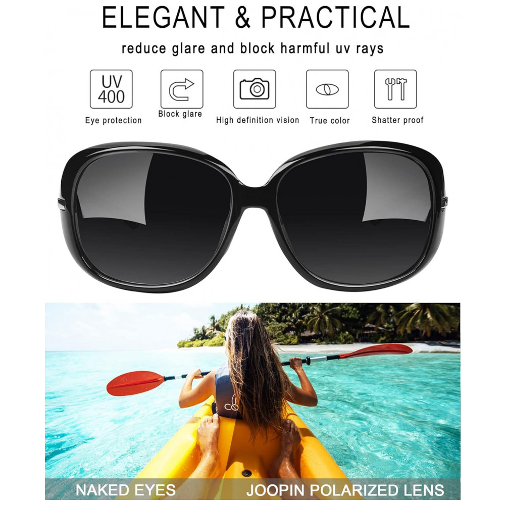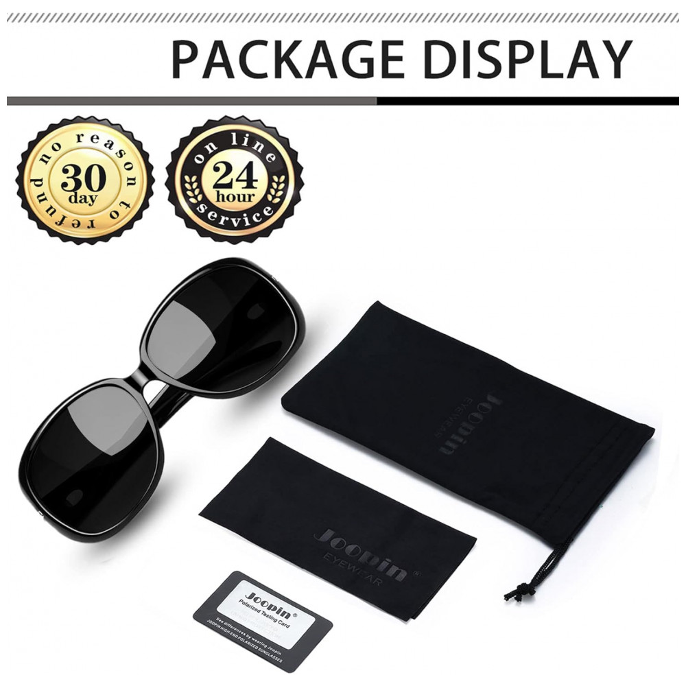 O PACOTE INCLUI Óculos de sol quadrados pretos Joopin para mulheres x 1, bolsa requintada x 1, pano de lente x 1, cartão de teste polarizado x 1. Entre com estilo e tenha uma experiência única de uso com os lindos óculos de sol Joopin