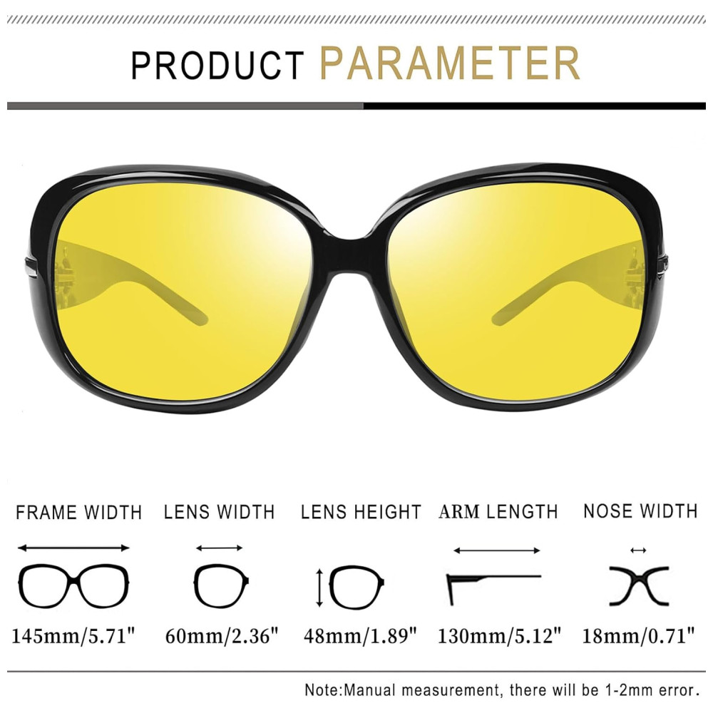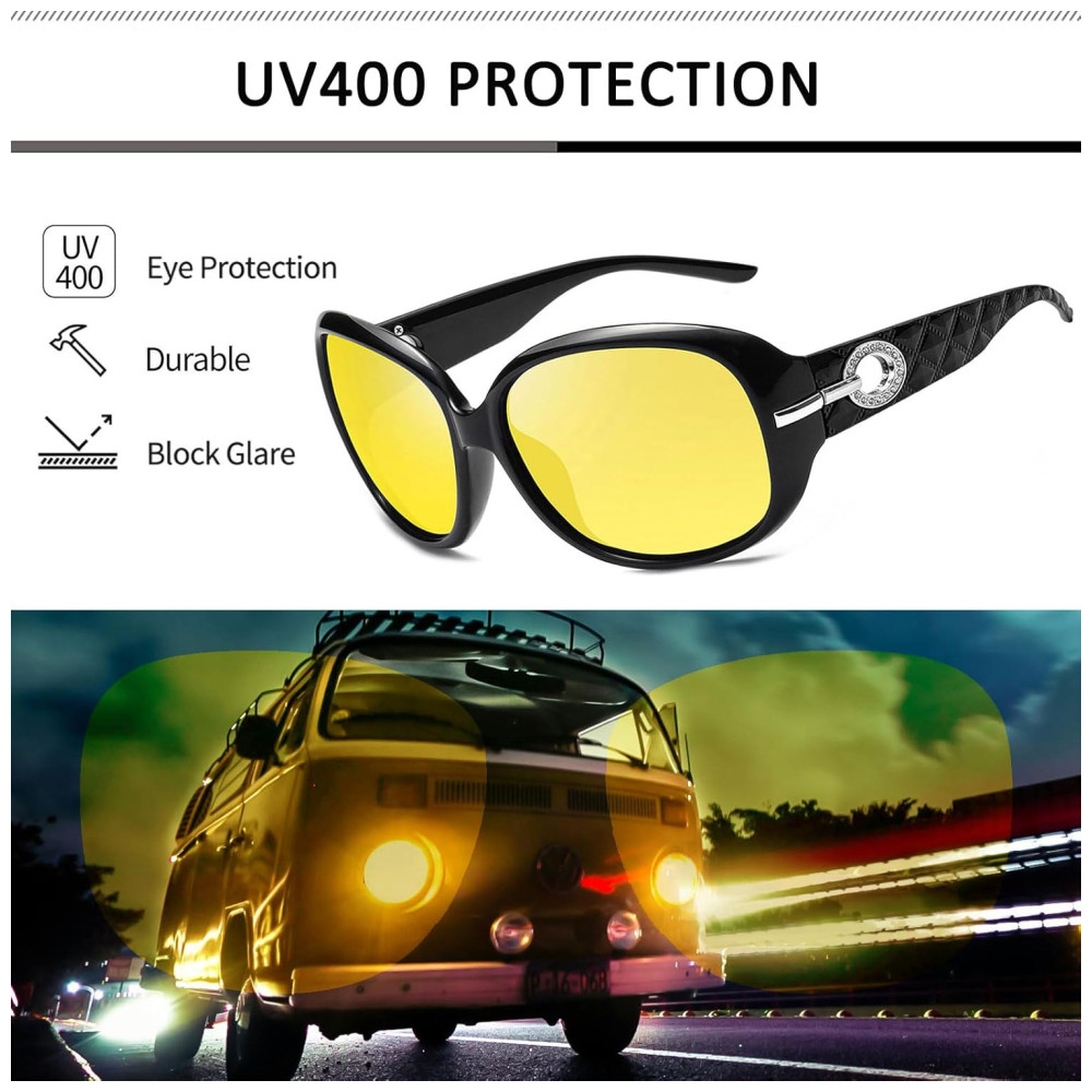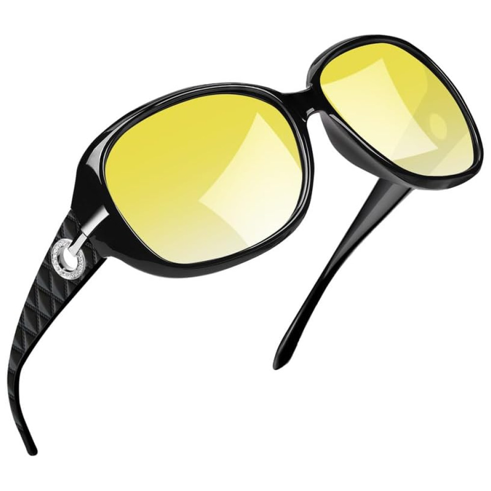 DESIGN ELEGANTE E DE MODA Óculos de mulher estilo Jackie O clássico com decoração de strass de luxo, ção de resina durável com design de almofada de nariz de uma peça adequado para qualquer rosto e qualquer faixa etária. Se você está encontrando os óculos amarelos para mergulho noturno, basta escolher com confiança, e Joopin lhe dará uma grande surpresa.