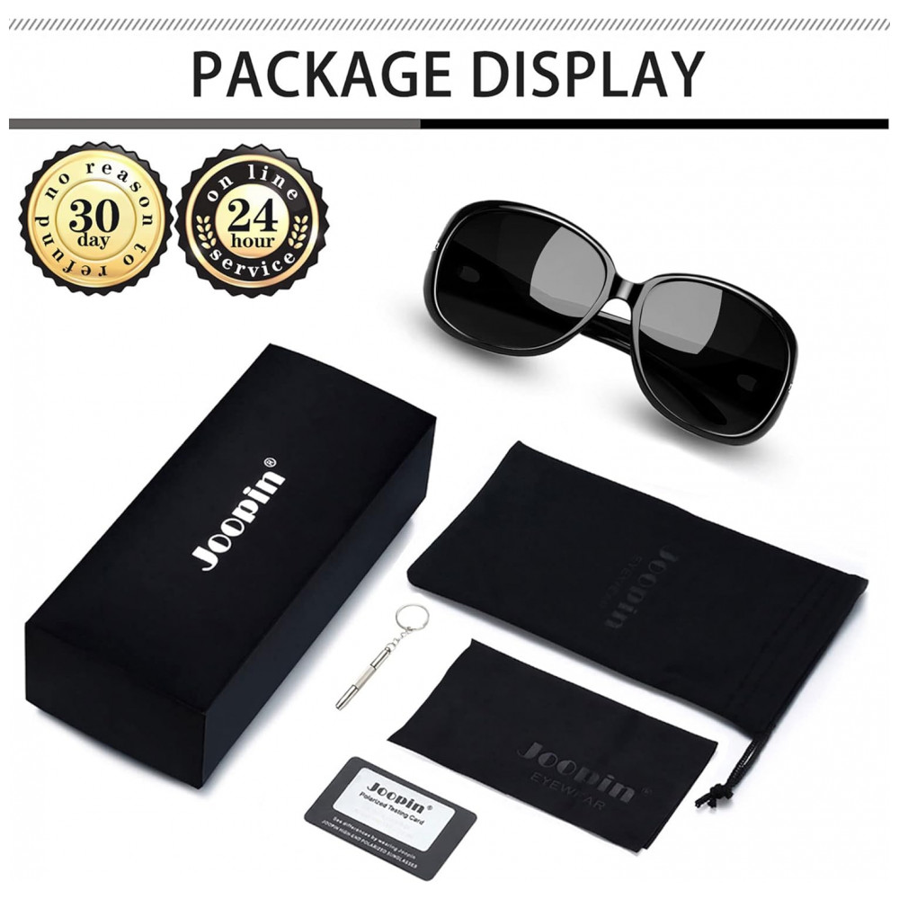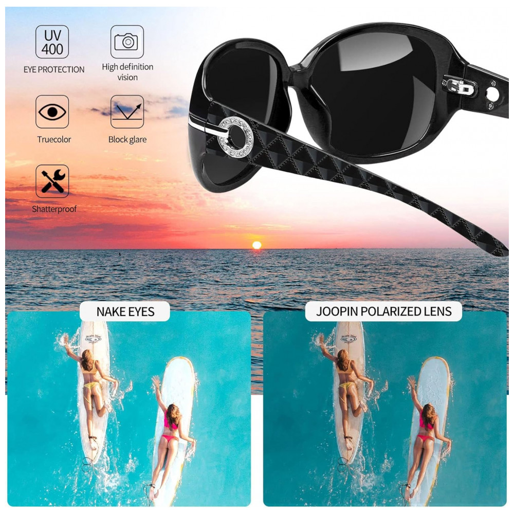 EXCELENTE LENTE POLARIZADA Estes óculos de proteção solar com lentes grandes polarizadas e não reflexivas dão aos seus belos olhos uma ótima proteção solar. Os óculos Joopin de tons polarizados superiores reduzem o brilho, restauram a cor verdadeira, proporcionam uma visão mais clara, aliviam a fadiga ocular. Estes óculos de sol femininos polarizados reais são a melhor escolha para dirigir, fazer compras, tomar banho de sol, pescar, correr, andar de bicicleta, escalar, férias, praia, qualquer atividade ao ar livre.