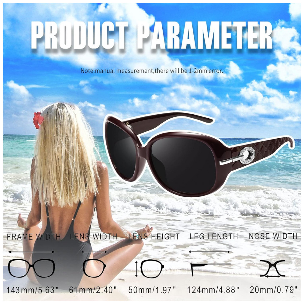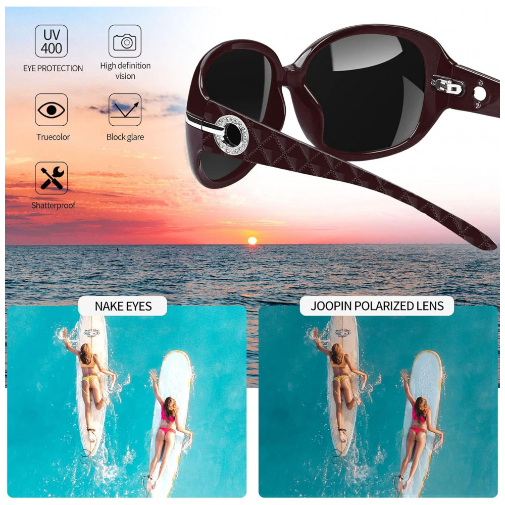 EXCELENTE LENTE POLARIZADA Estes óculos de proteção solar com lentes grandes polarizadas e não reflexivas dão aos seus belos olhos uma ótima proteção solar. Os óculos Joopin de tons polarizados superiores reduzem o brilho, restauram a cor verdadeira, proporcionam uma visão mais clara, aliviam a fadiga ocular. Estes óculos de sol femininos polarizados reais são a melhor escolha para dirigir, fazer compras, tomar banho de sol, pescar, correr, andar de bicicleta, escalar, férias, praia, qualquer atividade ao ar livre.