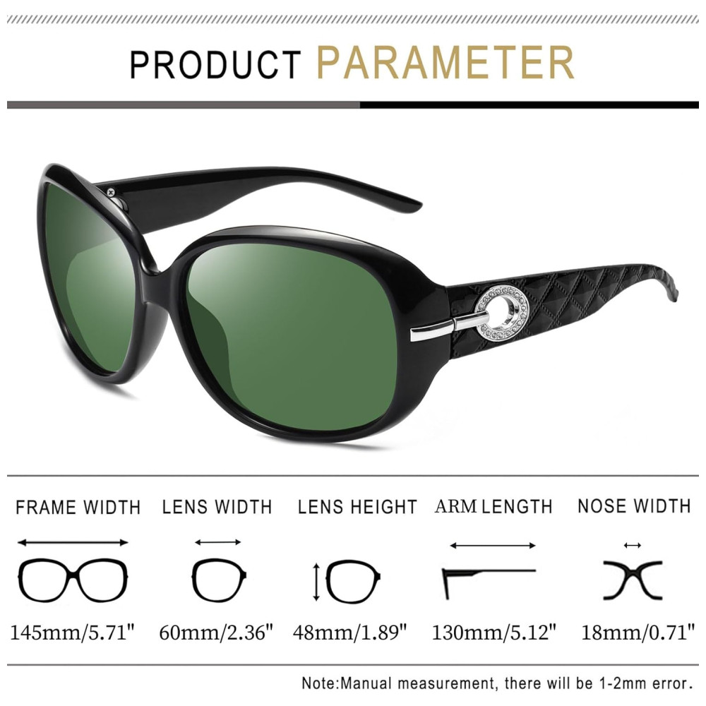PROTEÇÃO UV400 SUPERIOR As lentes de alta classe dos óculos de sol femininos são classificadas como UV400, podem bloquear 99 a 100 dos raios UVA e UVB. Quer esteja nublado ou ensolarado, os óculos de sol uv são essenciais para proteger os olhos contra os danos nocivos dos raios UV a longo prazo e para manter os olhos saudáveis e prevenir o envelhecimento. Os óculos de sol de ção preta superdimensionados têm lentes verdes escuras, perfeitas para luz solar forte.