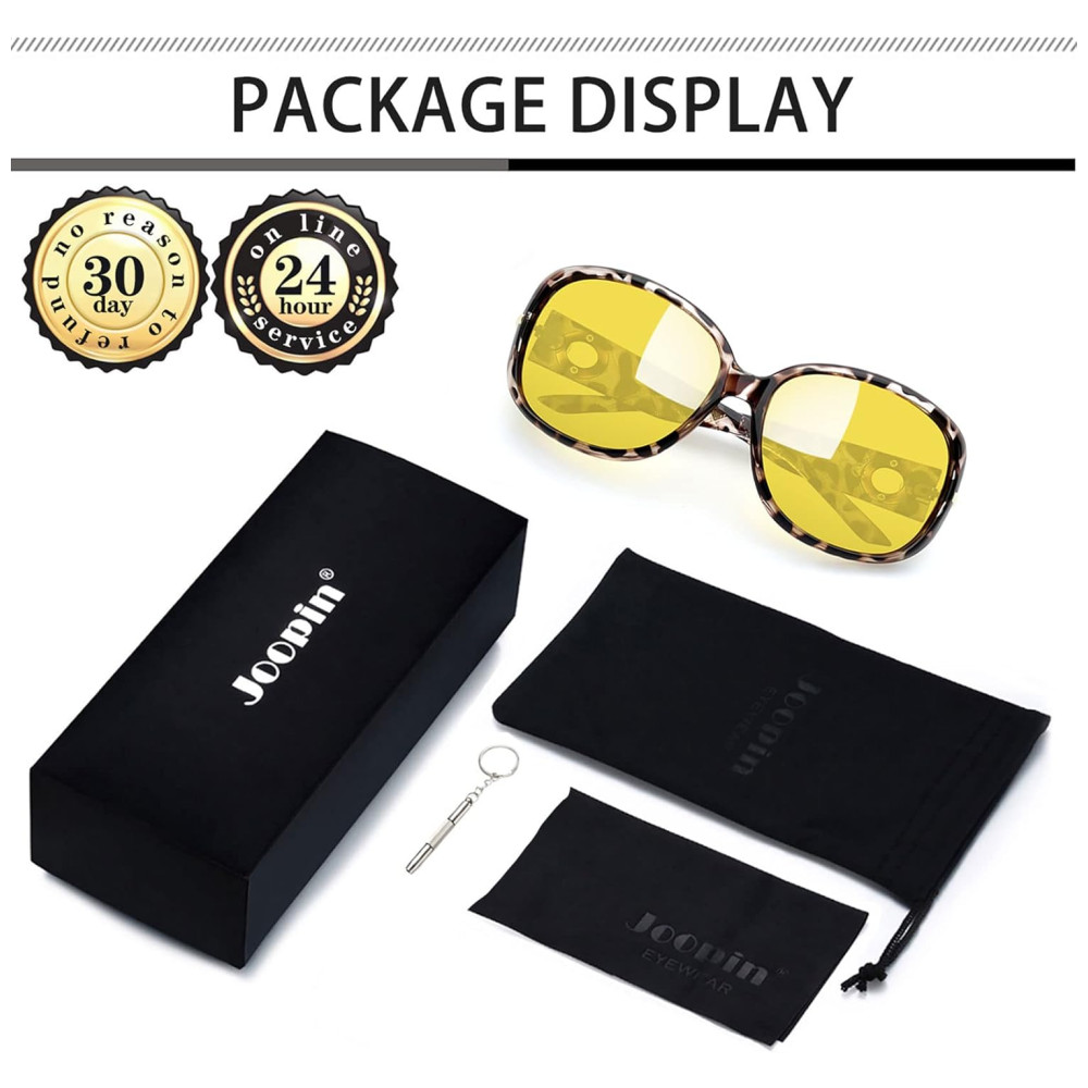ÓCULOS DE VISÃO NOTURNA DE ALTA DEFINIÇÃO PARA CONDUÇÃO Os óculos de condução noturnos Joopin para mulheres podem proteger seus olhos de elementos ambientais agressivos, reduzir o brilho noturno dos faróis de carros que se aproximam ou reflexos nítidos. Óculos de visão noturna podem melhorar o contraste e a clareza visual, fornecer uma visão mais suave e clara ao dirigir à noite ou nublado, nublado, chuvoso, dia de neve. O corte preciso Joopin fornece uma proteção segura para os óculos de direção noturnos, aproveite a bela noite com óculos de sol tartaruga.