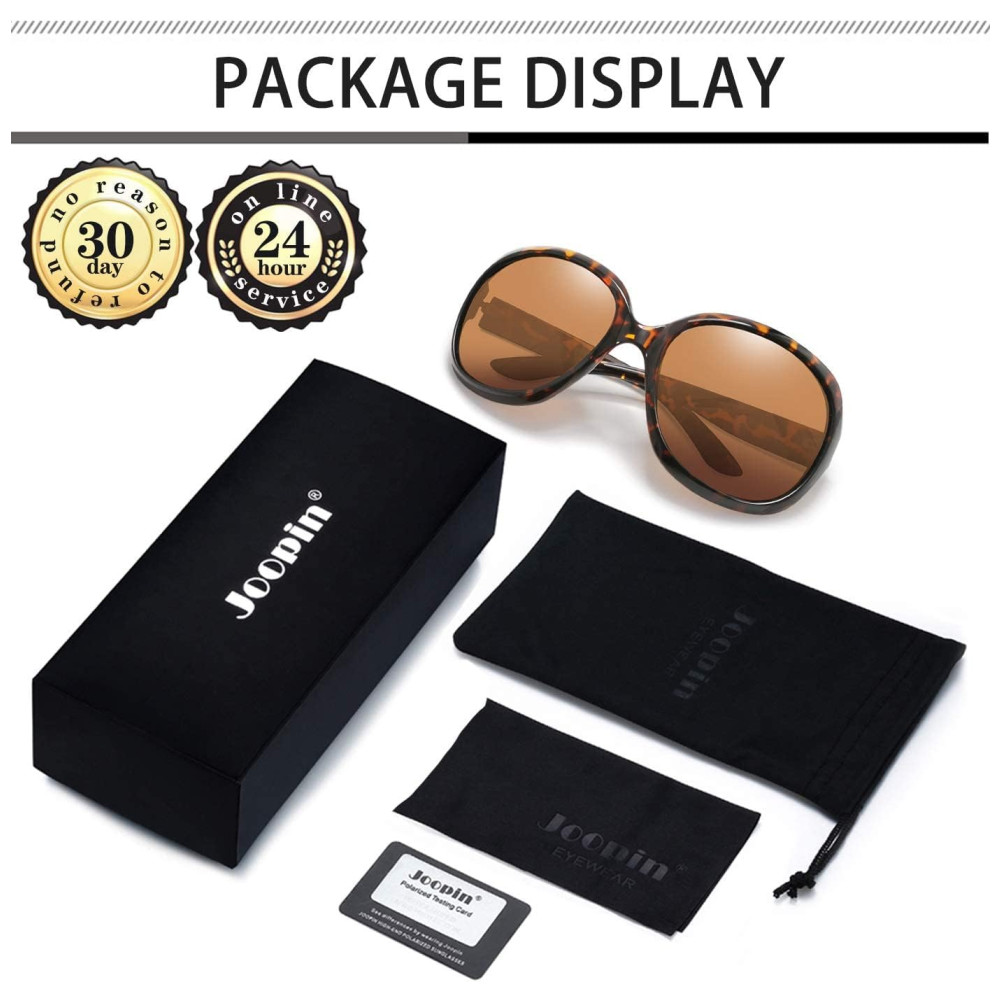 O PACOTE INCLUI Óculos de sol elegantes Joopin x 1 , caixa de óculos de sol x 1 , bolsa requintada x 1 , pano de lente x 1 , cartão de teste polarizado x 1