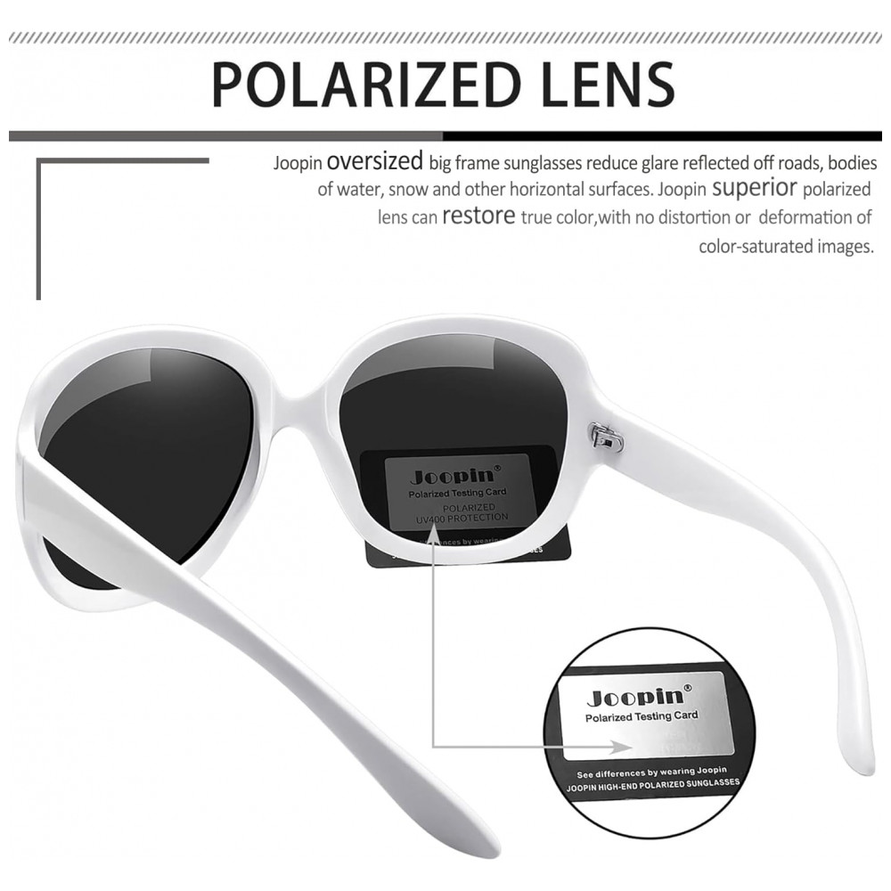 LENTE POLARIZADA HD Os óculos de sol polarizados femininos antirreflexo Joopin reduzem o brilho refletido em estradas, corpos dágua, neve e outras superfícies horizontais. Os óculos de sol Joopin polarizados podem restaurar a cor verdadeira, sem distorção ou deformação de imagens saturadas de cores. E se você sentir dores de cabeça devido à sensibilidade à luz, as lentes polarizadas dos óculos de sol preto Joopin podem ajudá lo a sentir dores de cabeça menos intensas. Joopin sempre protege seus olhos perfeitamente.