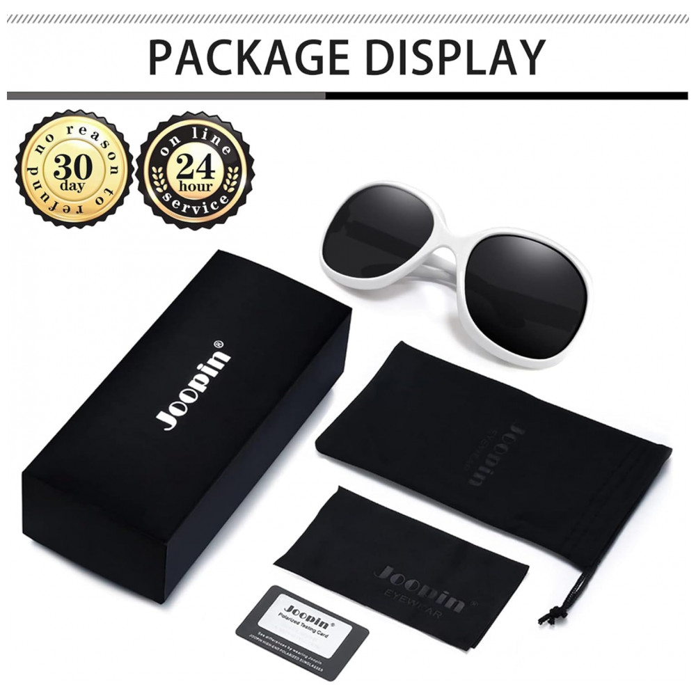 O PACOTE INCLUI Óculos de sol elegantes Joopin x 1 , caixa de óculos de sol x 1 , bolsa requintada x 1 , pano de lente x 1 , cartão de teste polarizado x 1