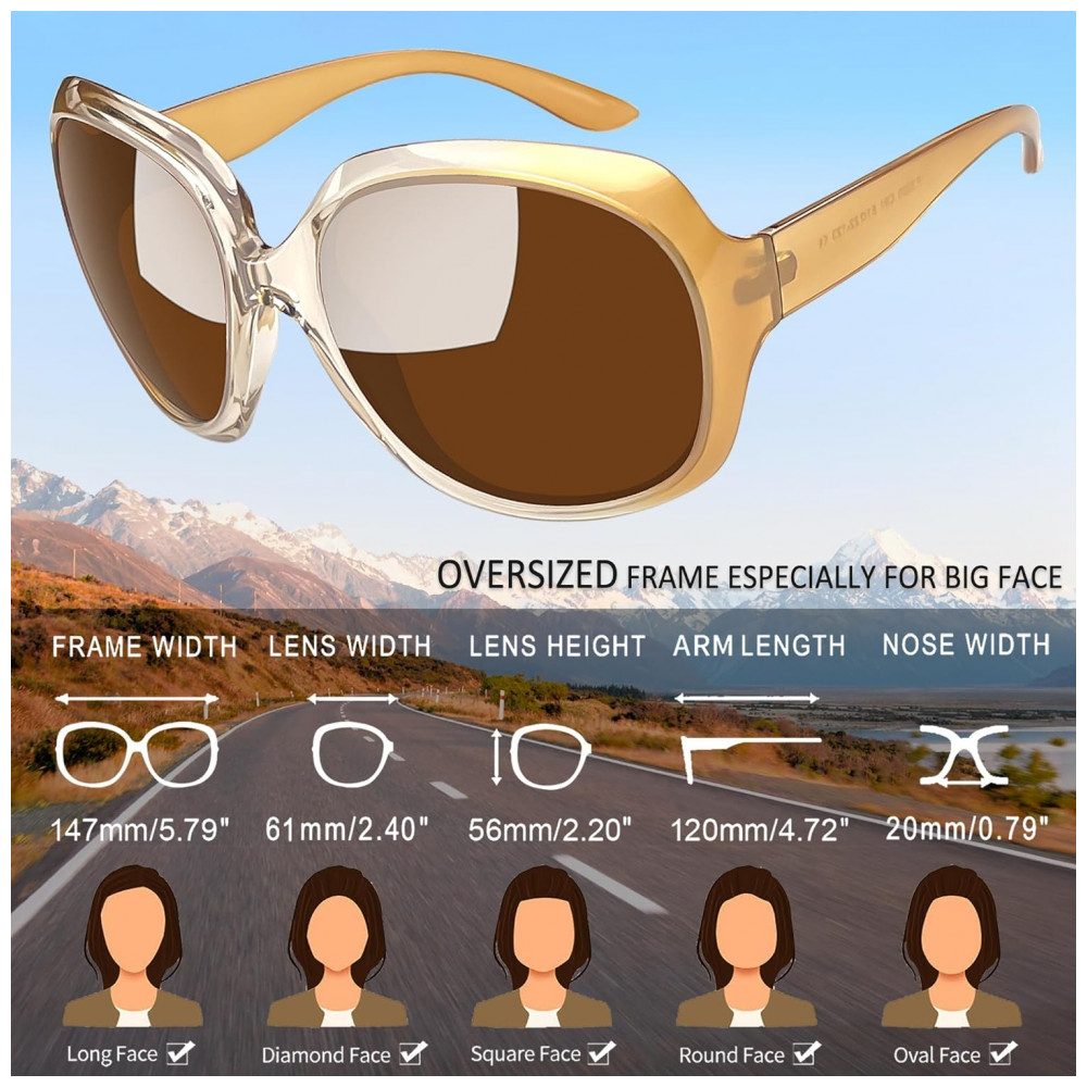 DESIGN ELEGANTE Óculos de sol clássicos retrô grandes para mulheres e design de cores bonitas permitem que você pareça tão elegante. Óculos de sol de ção grande para mulheres não apenas fornecem mais proteção para seus olhos, mas também permitem que você pareça muito mais bonita, isso lhe dará uma aparência sofisticada e refletirá seu gosto exclusivo de alta qualidade como uma mulher moderna.