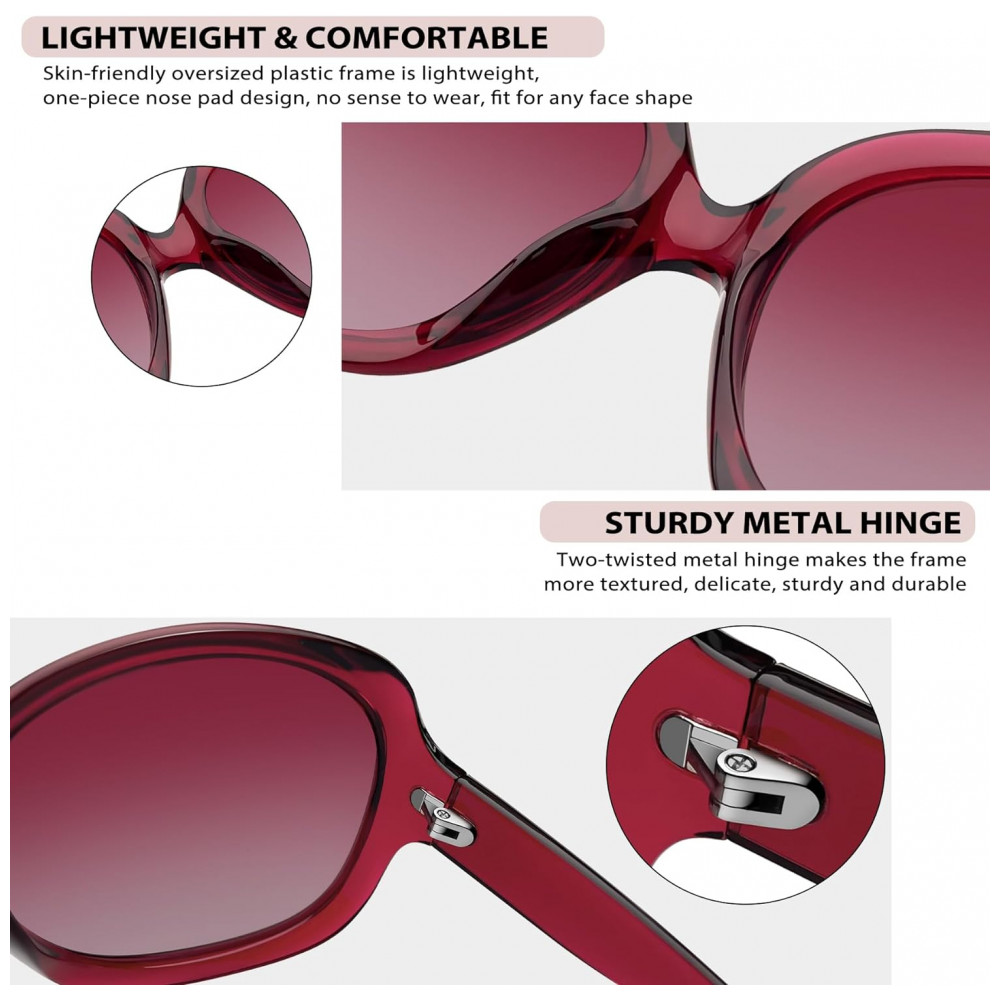 LENTES POLARIZADAS ATUALIZADAS PROTEÇÃO UV Óculos de sol polarizados femininos antirreflexo Joopin usando lentes TAC de polarização de alta qualidade. Os óculos de sol ovais grandes com ção espessa Joopin não apenas restauram a cor verdadeira, sem distorção ou deformação de imagens saturadas de cores, mas também bloqueiam 99 a 100 da radiação UVA e UVB. Este óculos de sol para olhos sensíveis para mulheres é nobre para combinar com qualquer roupa, a melhor escolha quando você está fora no verão.