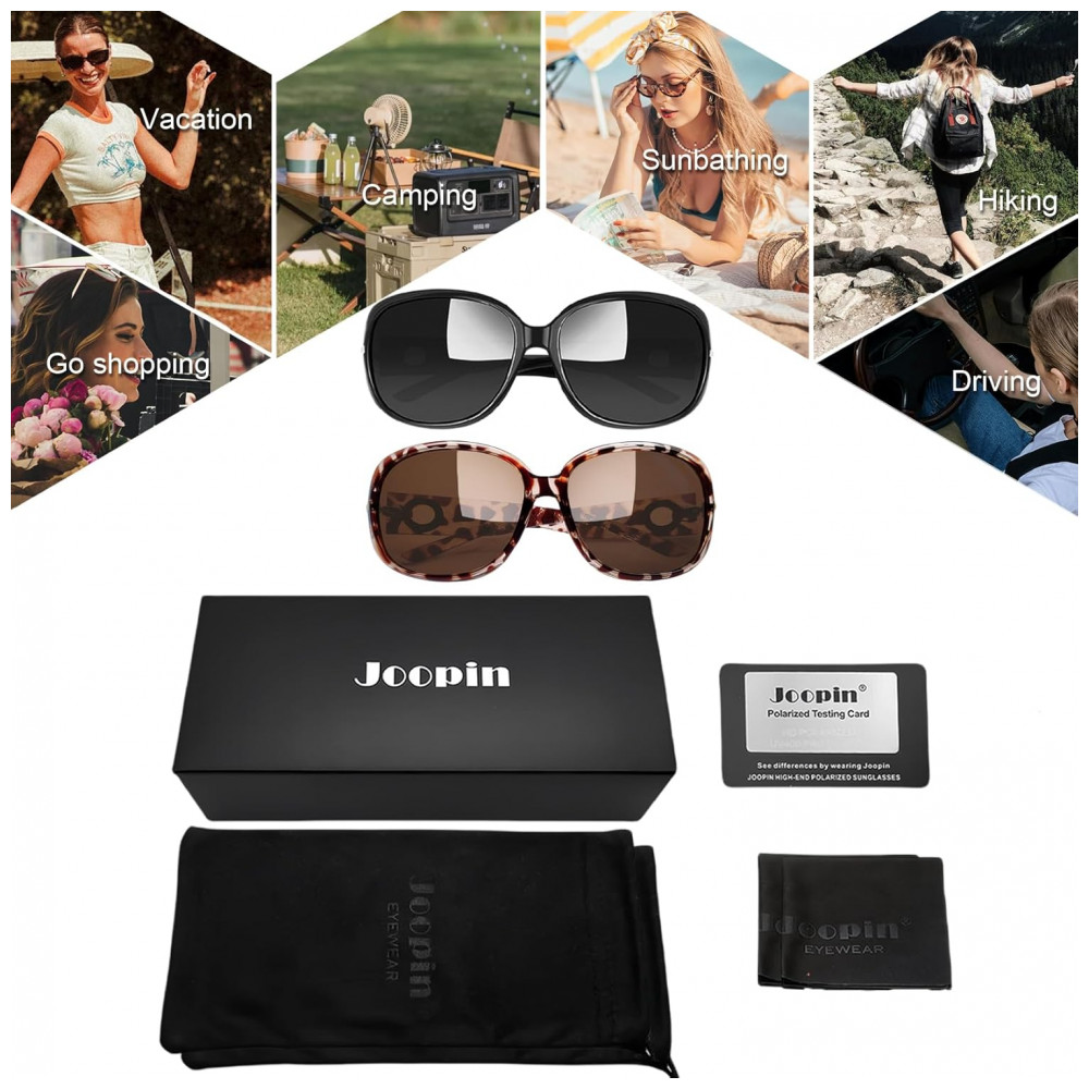 Óculos de Sol Feminino Polarizados com Proteção UV Joopin 2 Unidades Preto e Marrom