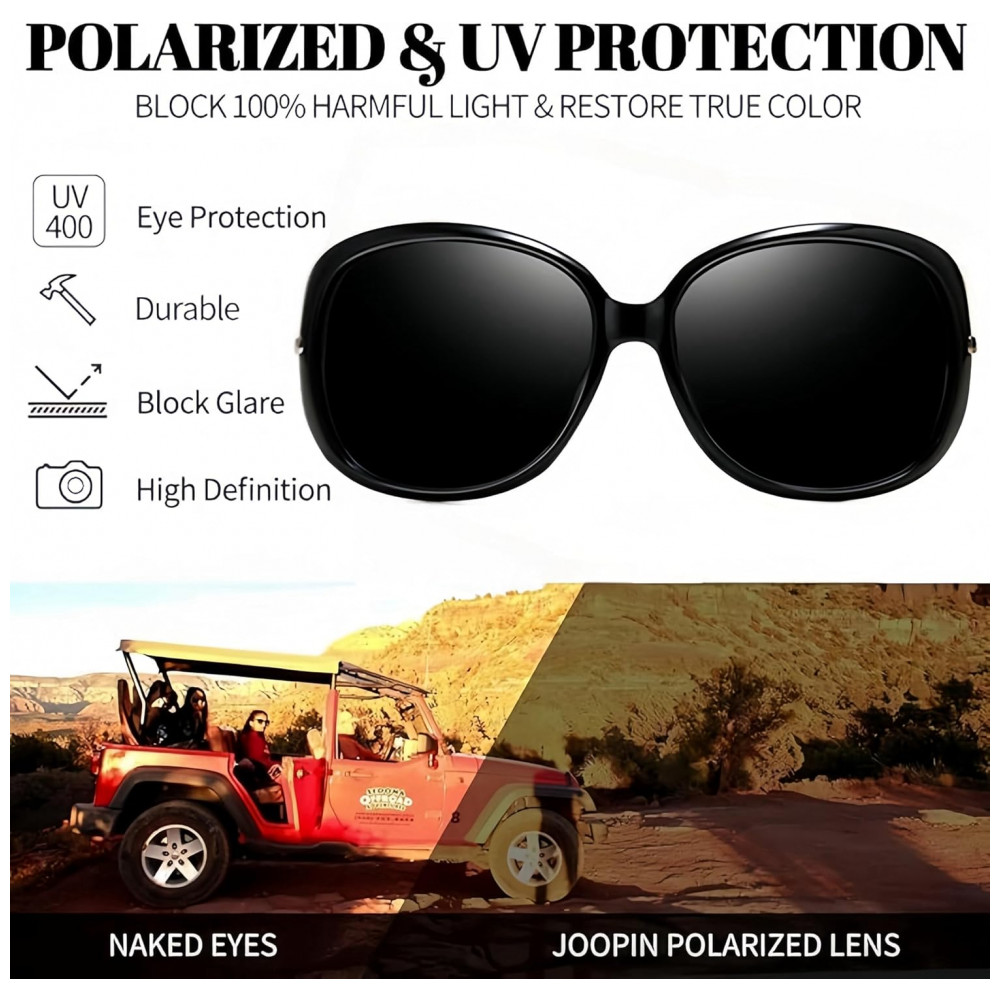 Óculos de Sol Feminino Polarizados com Proteção UV Joopin C02 2 Unidades Preto e Preto Amarelo