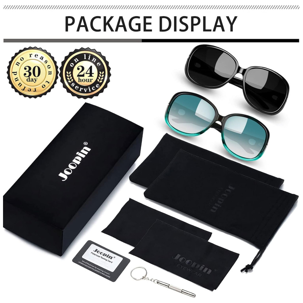 Óculos de Sol Feminino Polarizados com Proteção UV Joopin C03 2 Unidades Preto e Verde Gradiente