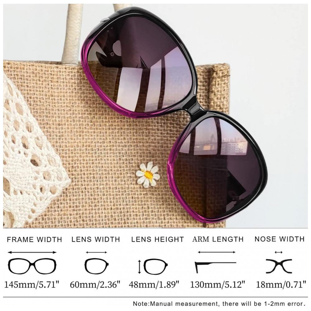 PROTEÇÃO UV400 SUPERIOR As lentes de alta classe dos óculos de sol polarizados femininos são classificadas como UV400, podem bloquear 99 a 100 dos raios UVA e UVB. Quer esteja nublado ou ensolarado, os óculos de sol uv são essenciais para proteger os olhos contra os danos nocivos dos raios UV a longo prazo e para manter os olhos saudáveis e prevenir o envelhecimento. Pacote com 2 óculos de sol vintage em massa, óculos de sol preto escuro para dirigir e óculos de sol roxo gradiente para uso diário.