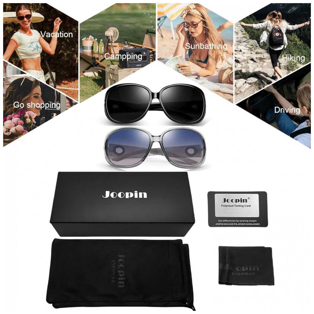 Óculos de Sol Feminino Polarizados com Proteção UV Joopin C09 2 Unidades Preto e Cinza Claro