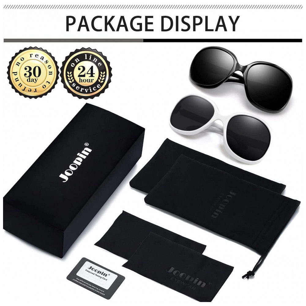 Óculos de Sol Feminino Polarizados com Proteção UV Joopin D03 2 Unidades Preto e Branco Preto