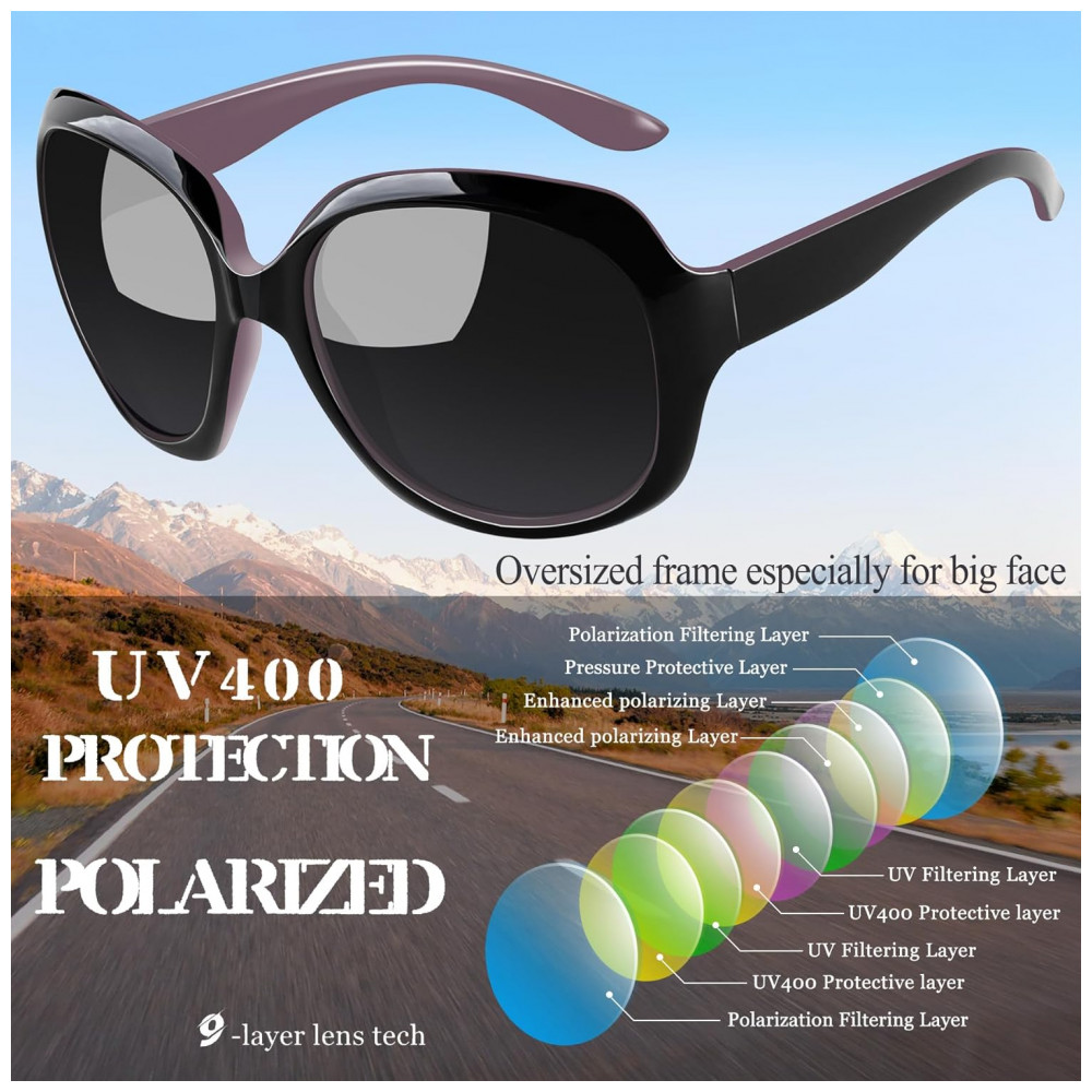 LENTE POLARIZADA SUPERIOR Os óculos de sol polarizados femininos antirreflexo Joopin reduzem o brilho refletido em estradas, corpos dágua, neve e outras superfícies horizontais. Os óculos polarizados podem restaurar a cor verdadeira, sem distorção de imagens saturadas de cores. Óculos de lentes escuras polarizadas podem ajudá lo a aproveitar o sol sem um fardo. Os grandes óculos de sol Joopin sempre protegem seus olhos perfeitamente. Pacote com 2 óculos de sol da moda a granel, óculos de sol pretos e óculos de sol roxos, cada um será o seu favorito.